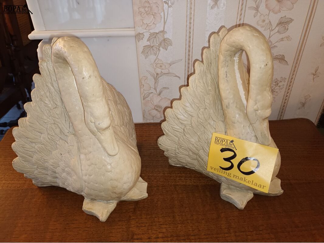 Koppel bloempotten in de vorm van een zwaan. Om aan de muur te hangen. 25 x 30 x 20 cm.
