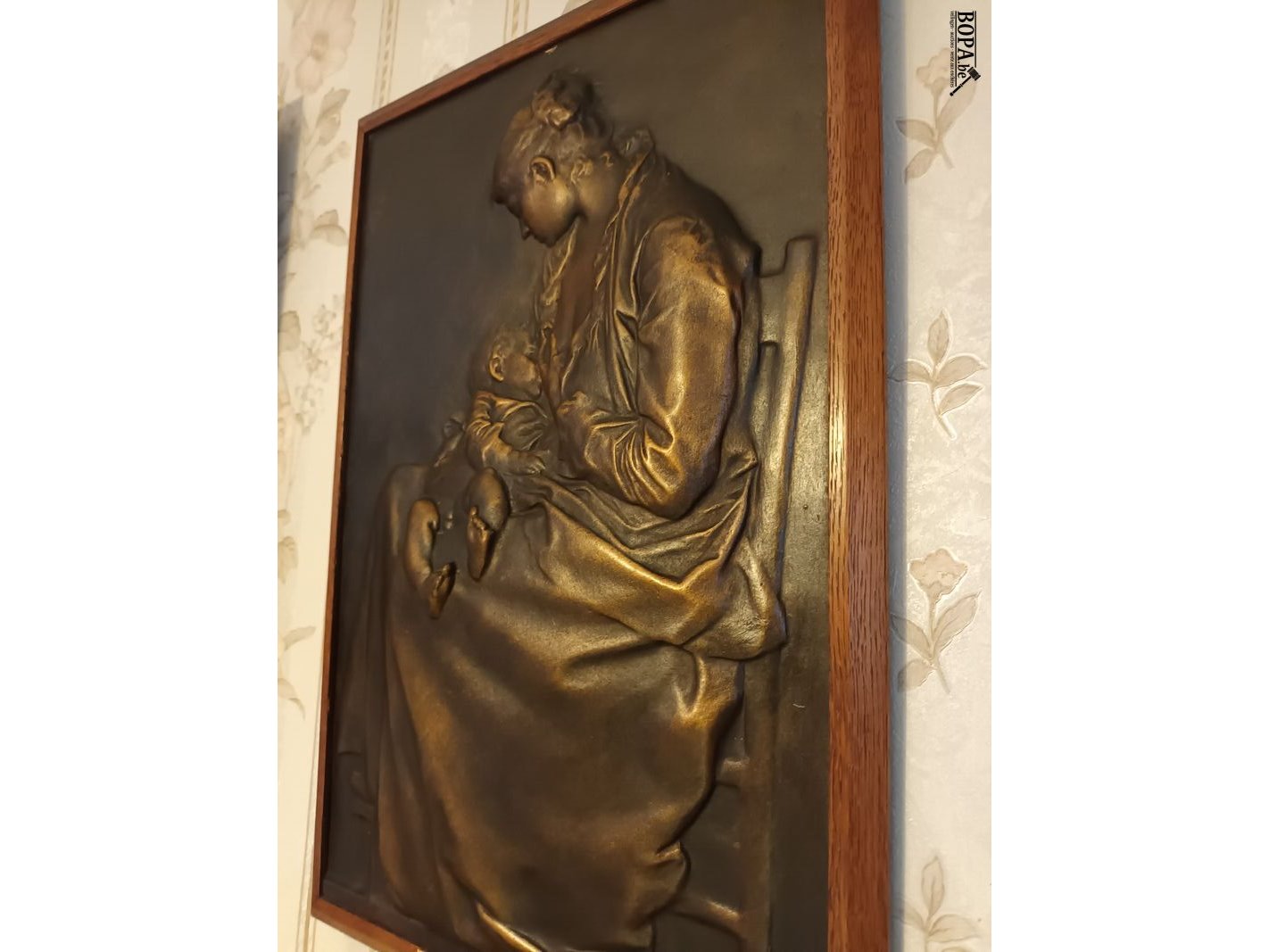 Kader met reliëf in gips. Moeder en kind. 31 x 45 cm.