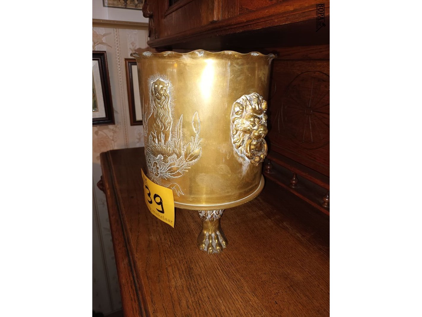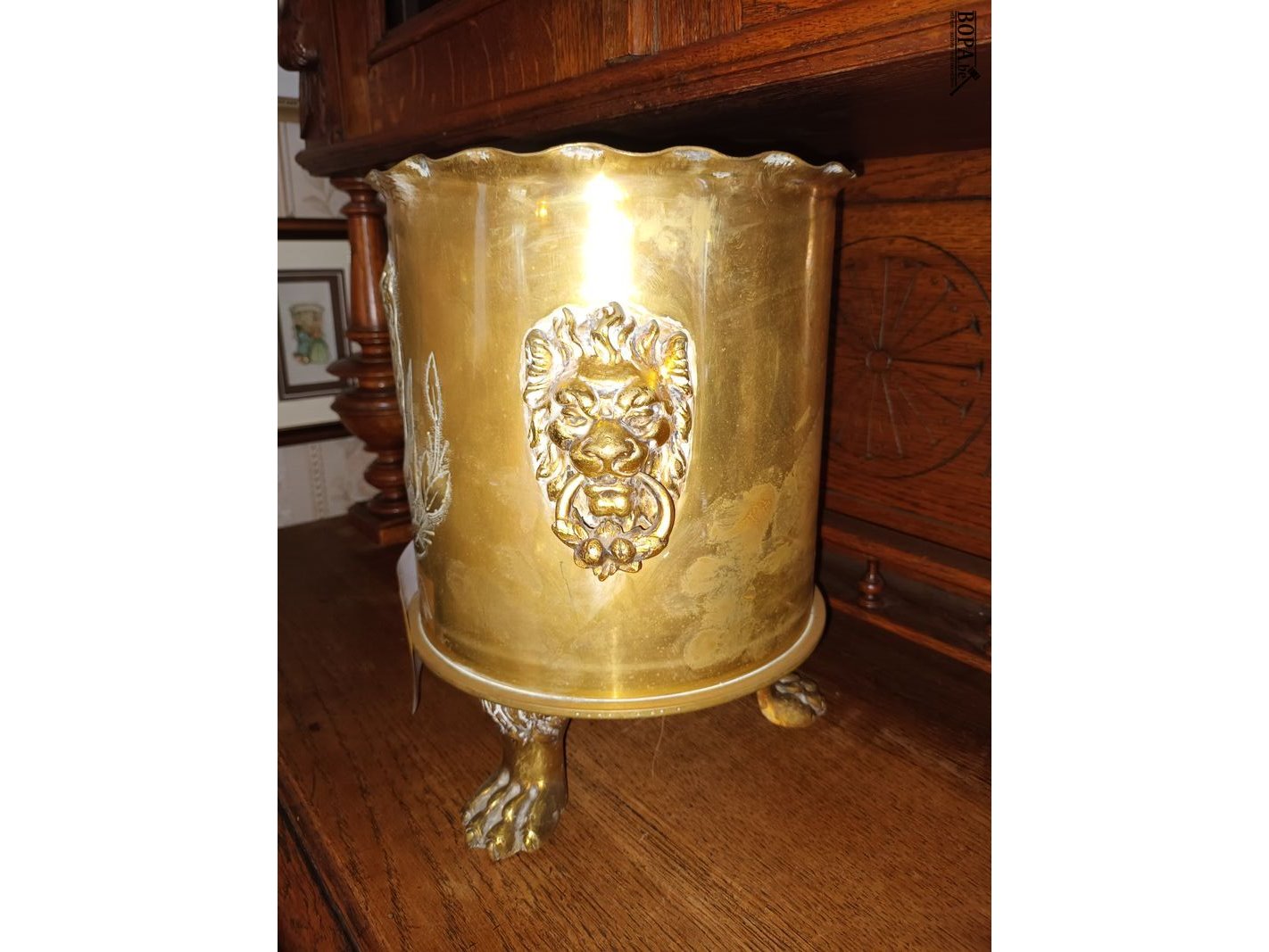 Herdenkingspot WO I in koper. 1918 met Vlaamse leeuw. Diameter 30 cm. Hoogte 31 cm.