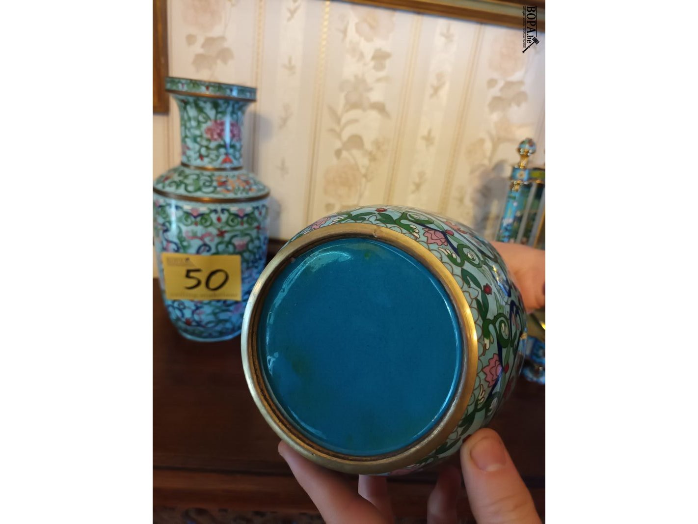 Koppel Chinese cloisonné vazen. Hoogte 38 cm.