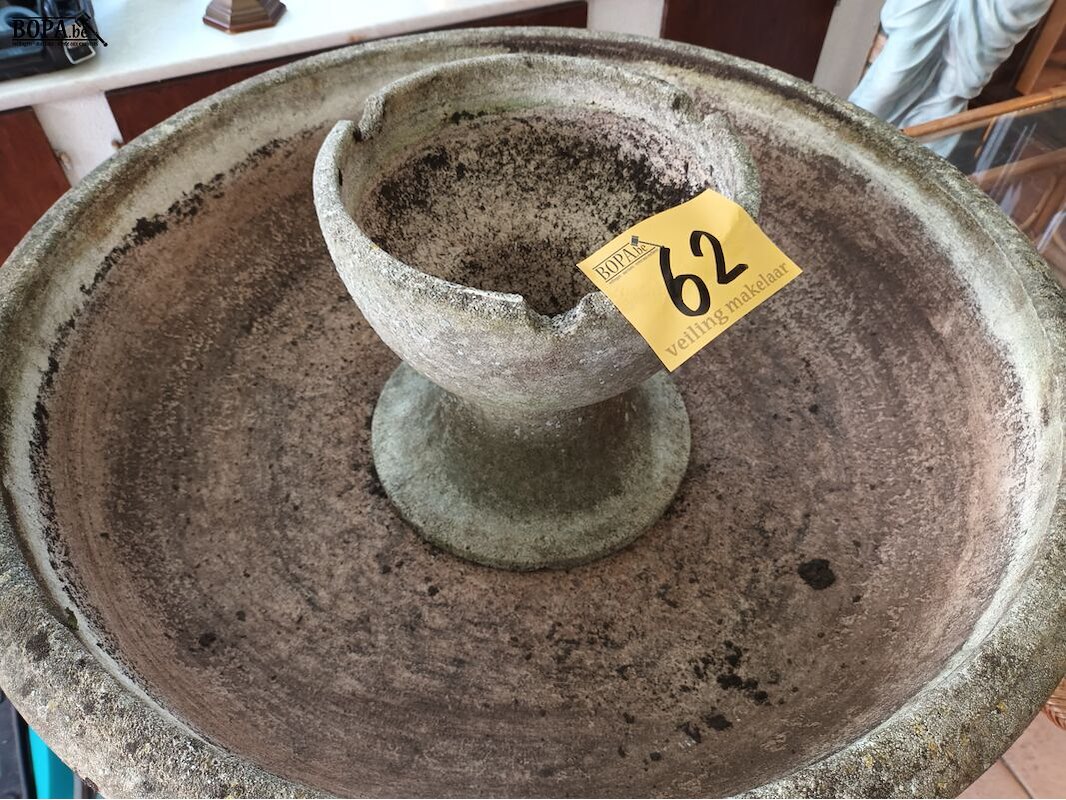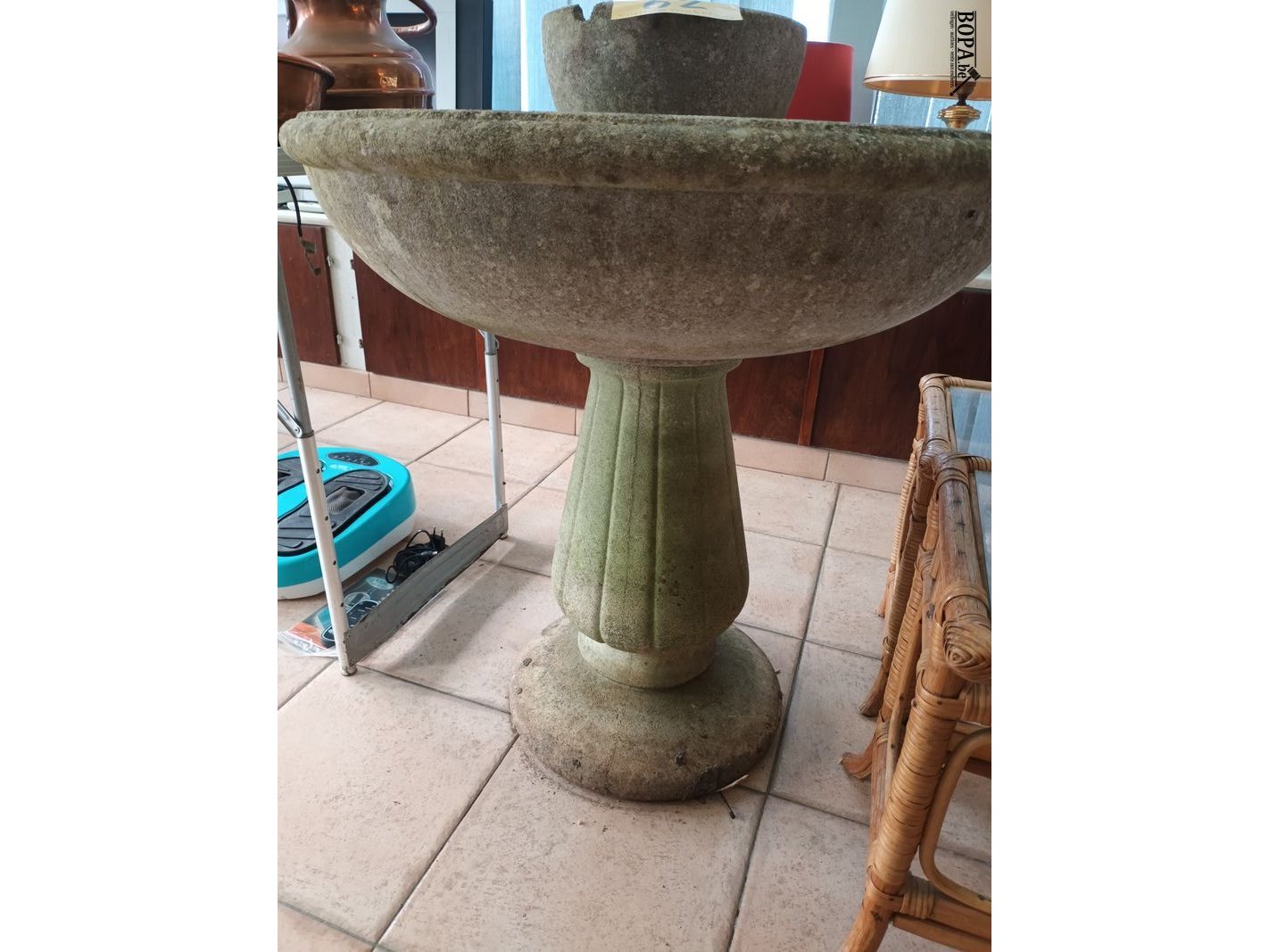 Bloembak op sokkel in beton. Diameter 73 cm. Hoogte 87 cm.