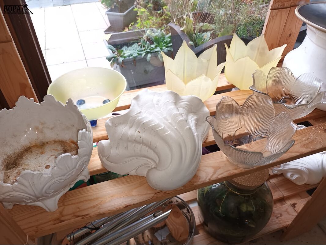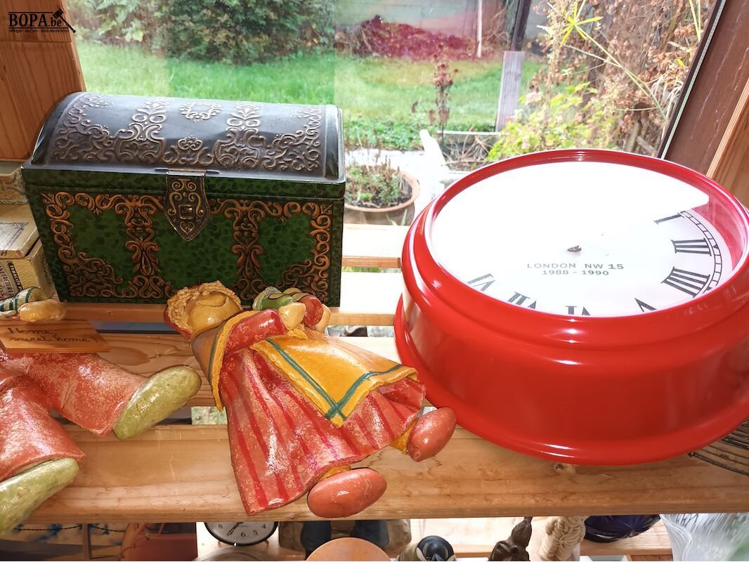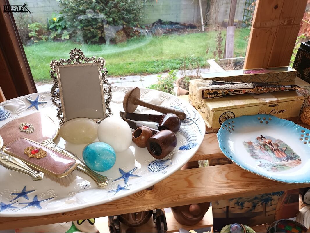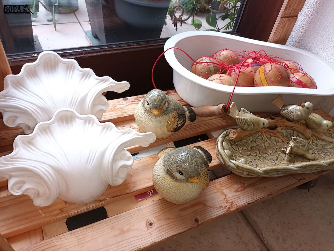 Decoratie. Ca. 70 stuks. Inhoud van het houten rek.