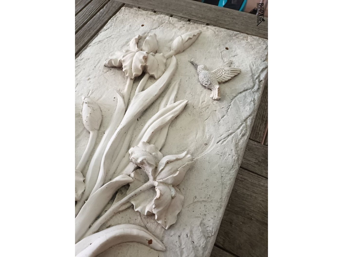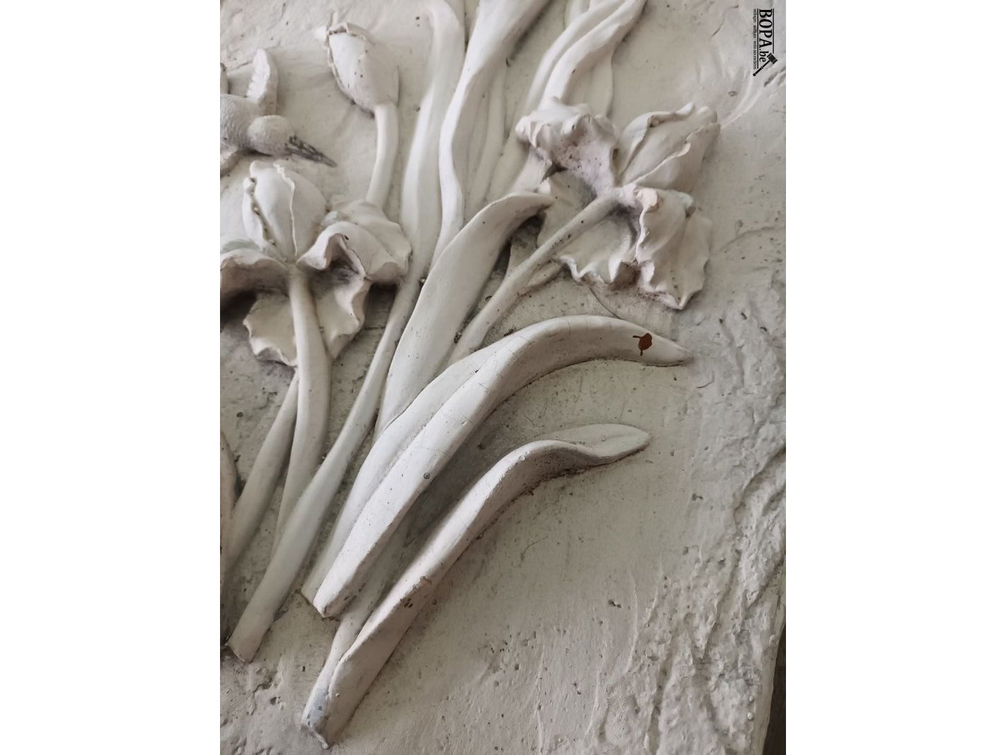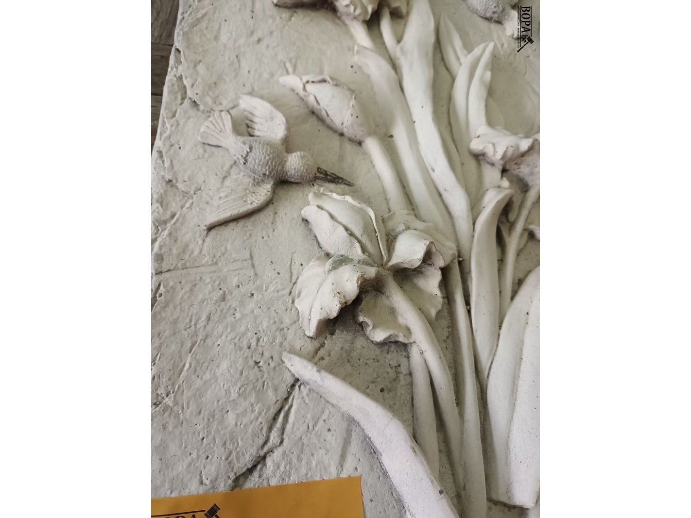 Reliëf in gips met bloemen en vogels. 36 x 61 cm.