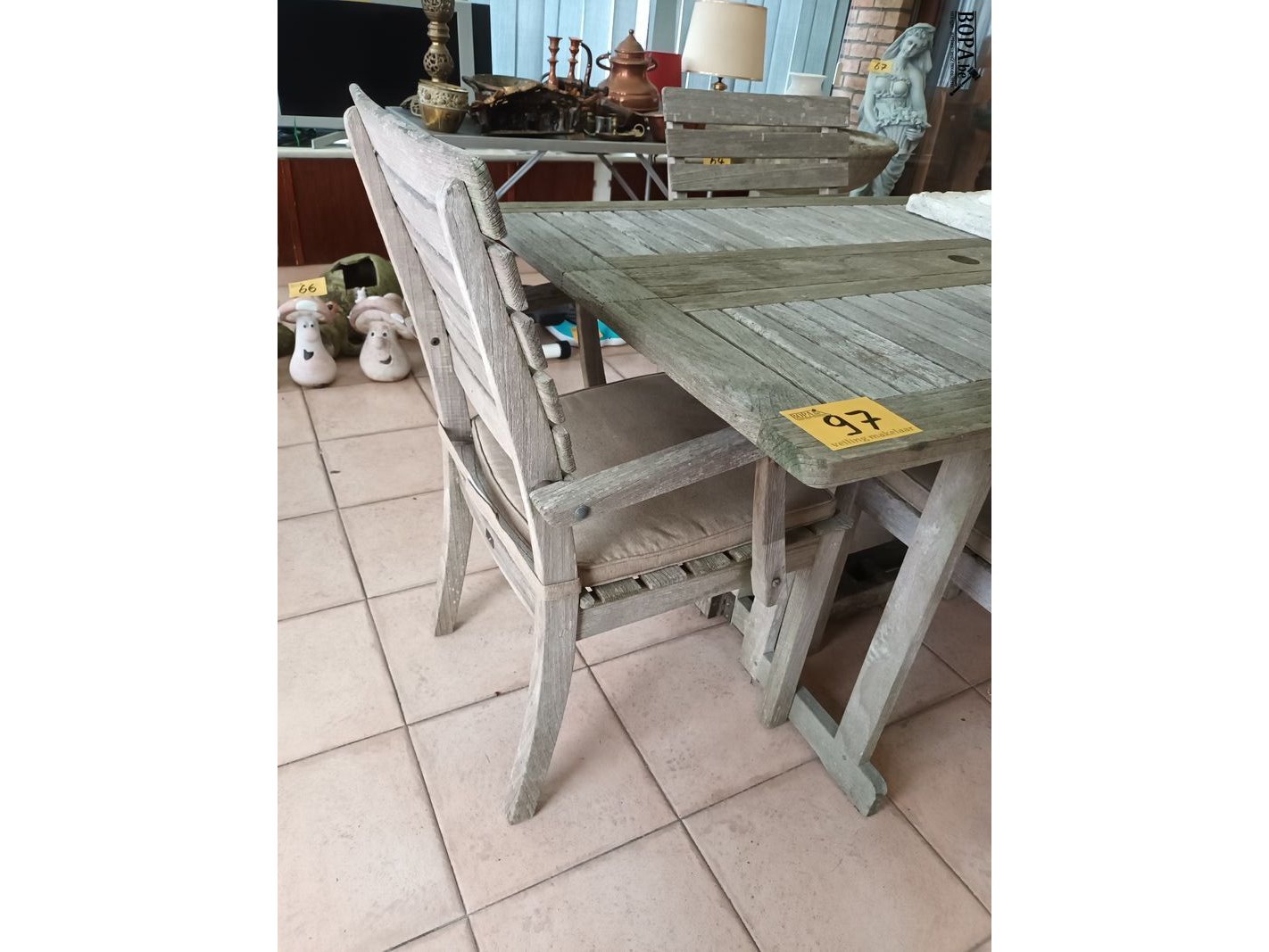 Tuintafel (140 x 90 x 75 cm) en 4 stoelen in teak.