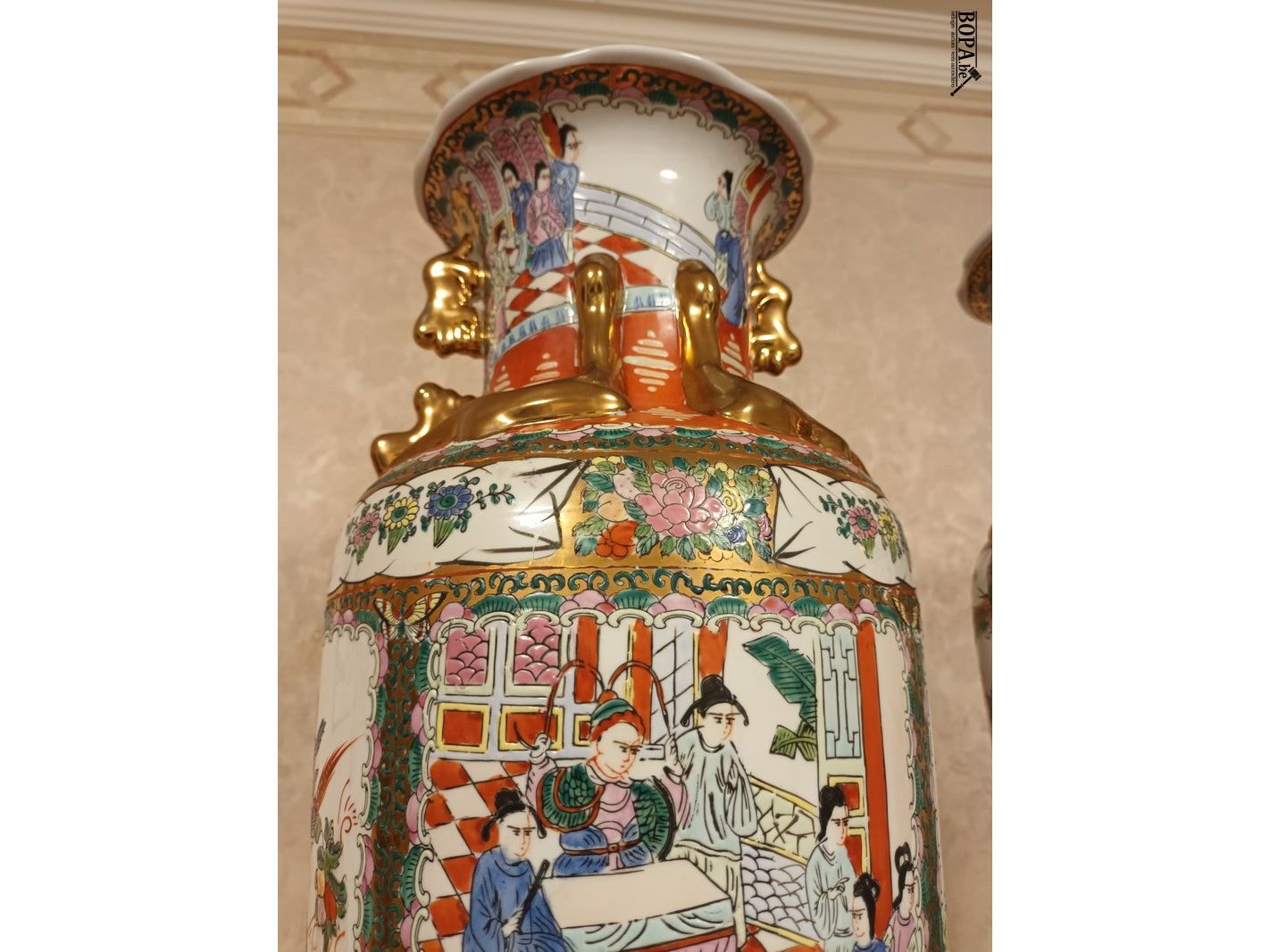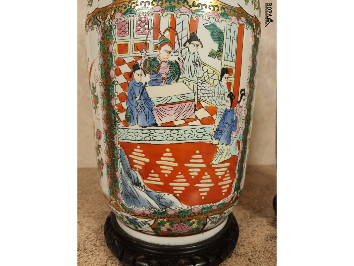 Koppel Chinese vazen op sokkel. Hoogte 49 cm.