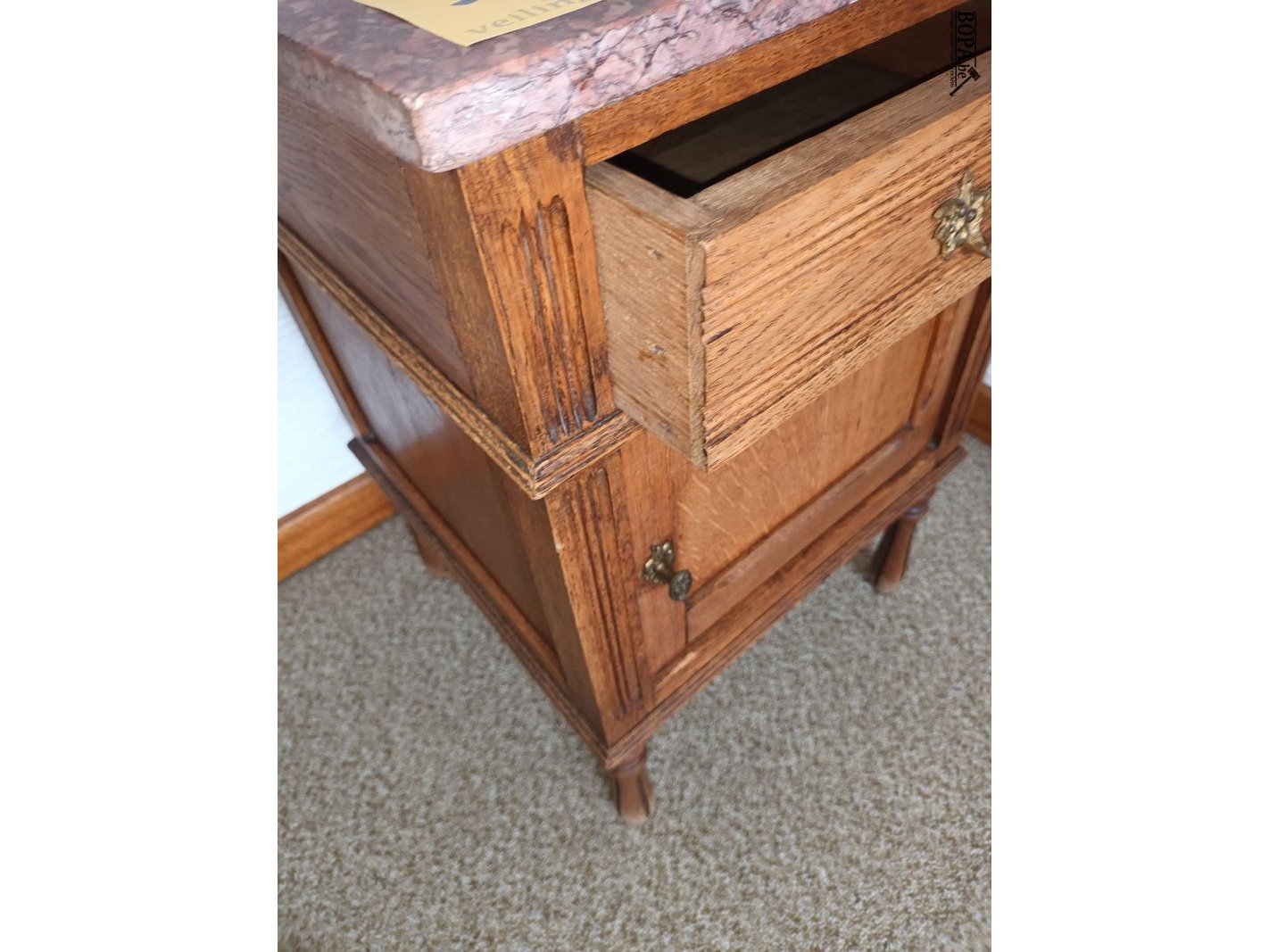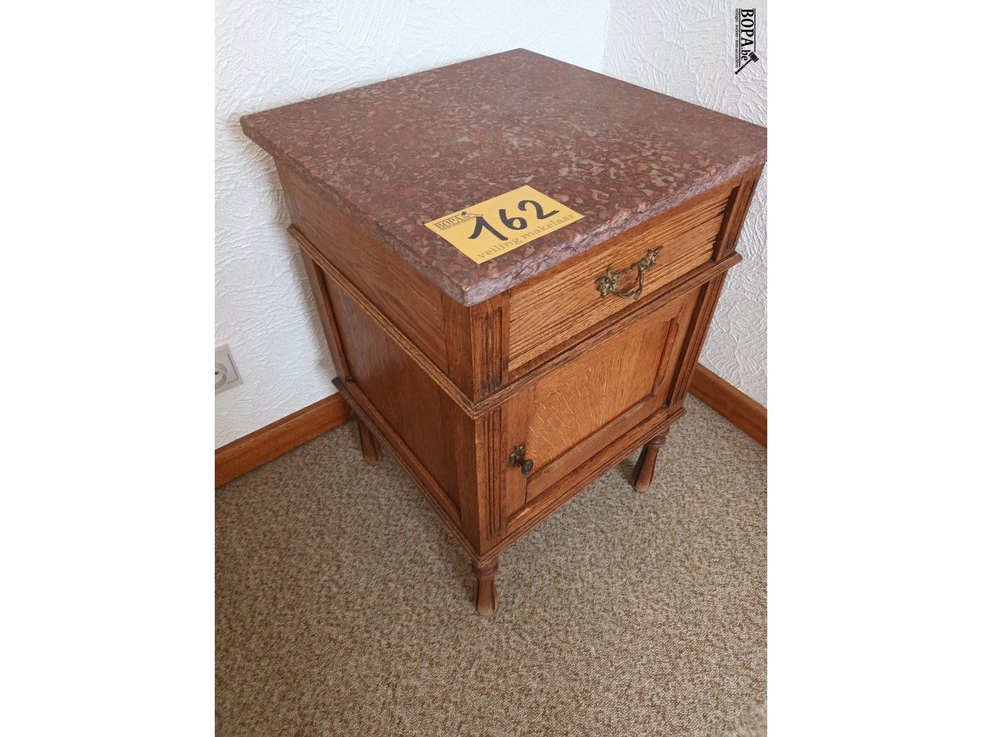 Nachtkastje met marmeren blad. 40 x 40 x 61 cm.