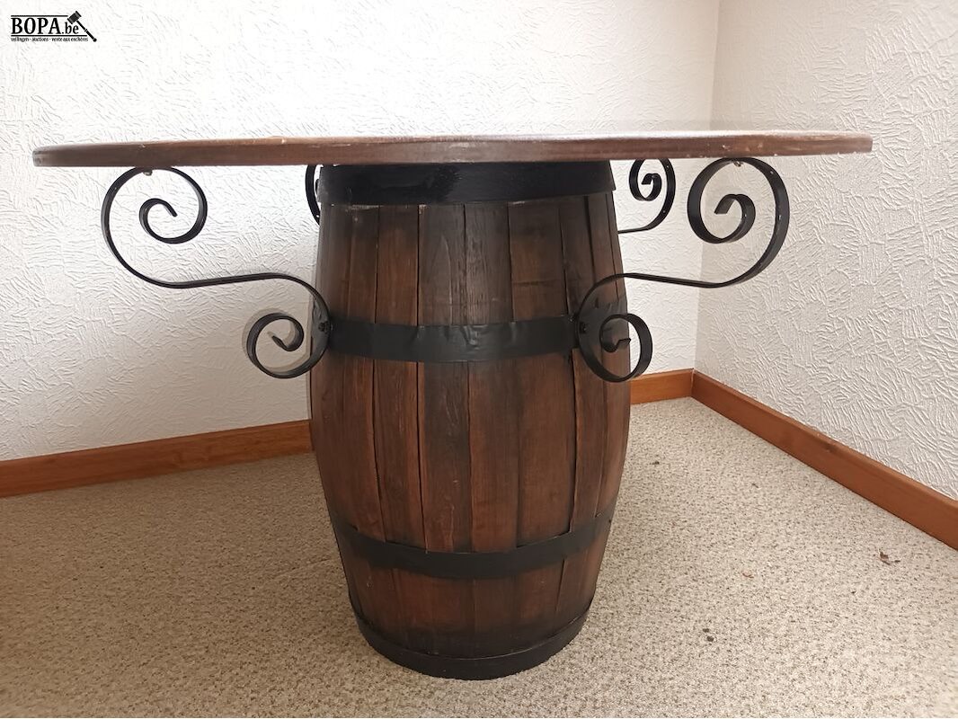Salontafel met bierton. Diameter 90 cm. Hoogte 65 cm.