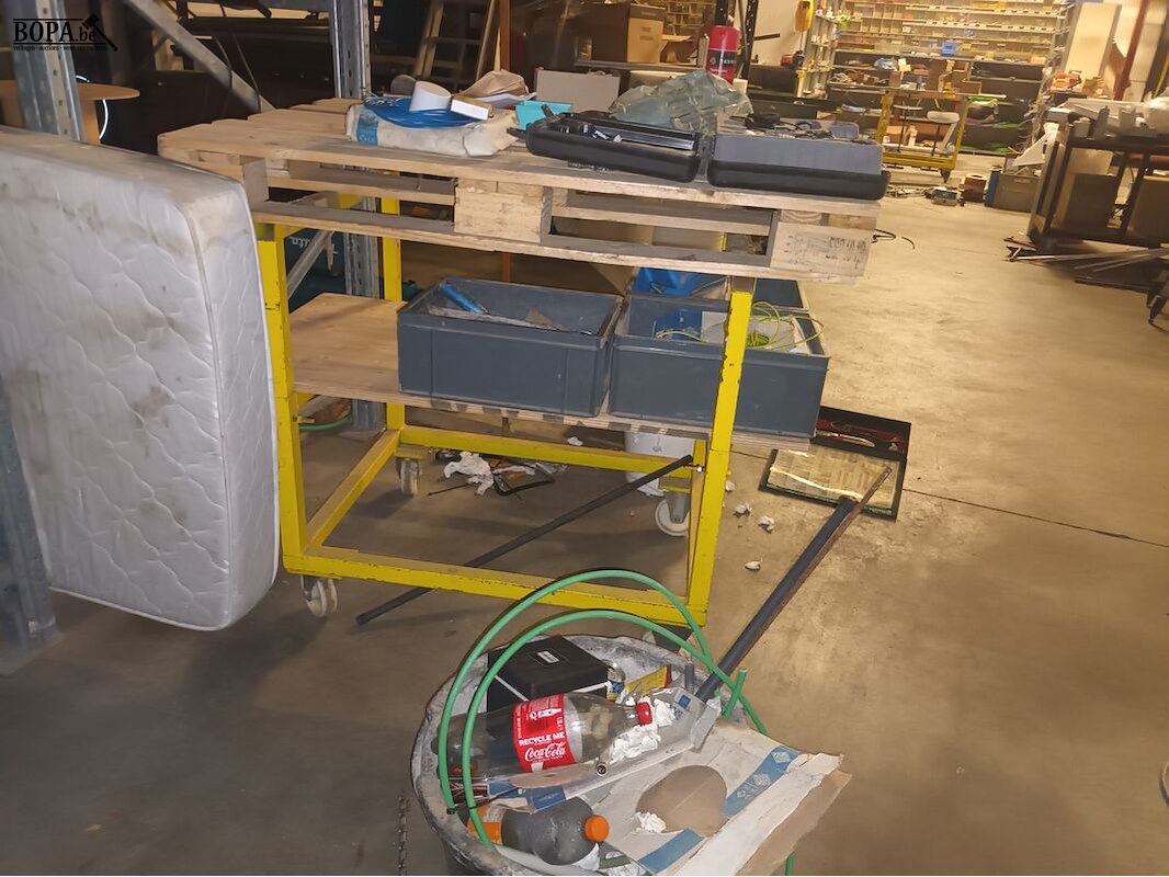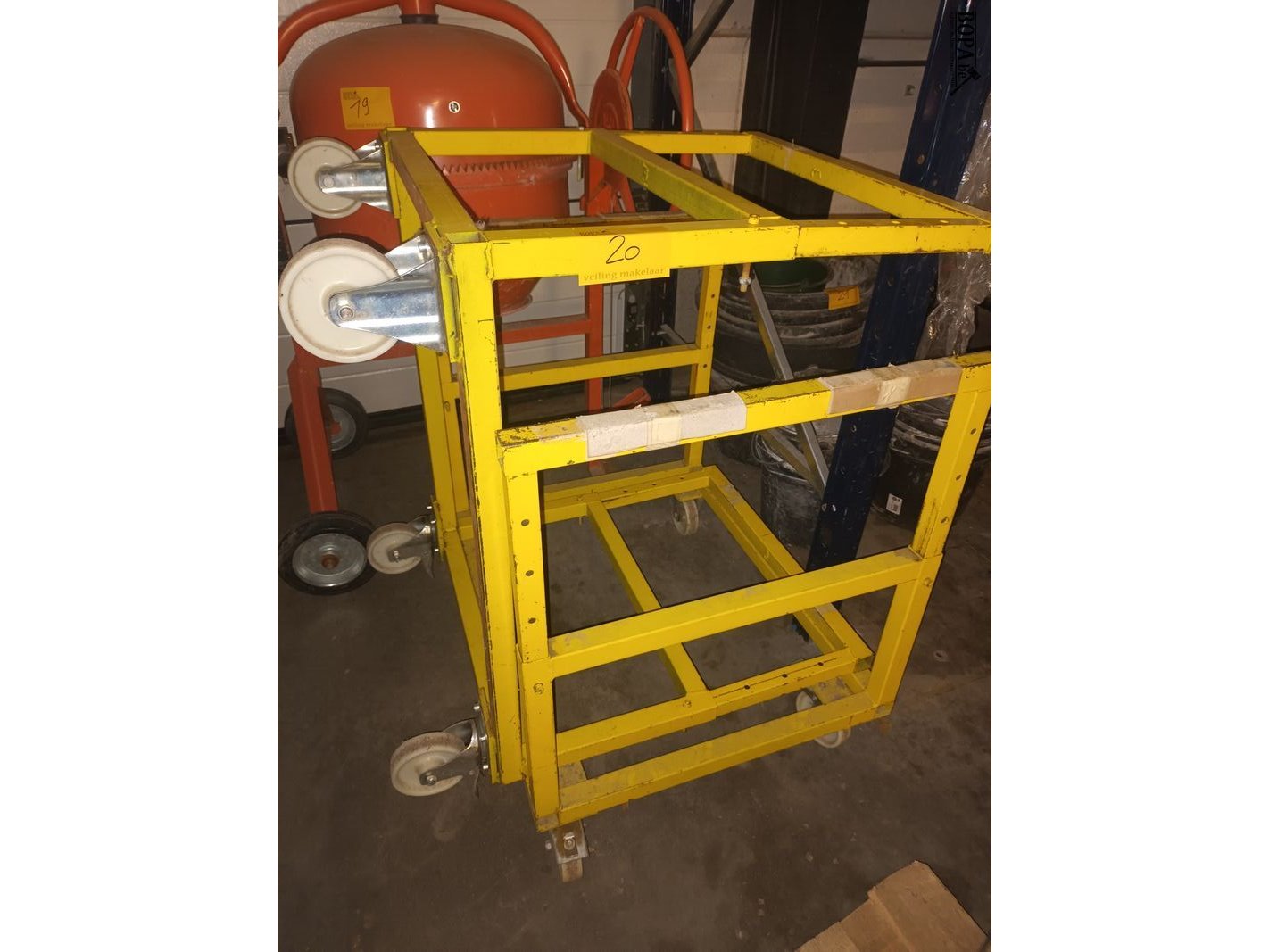 Lot 20 - gele stapelkar op wielen. 4 stuks