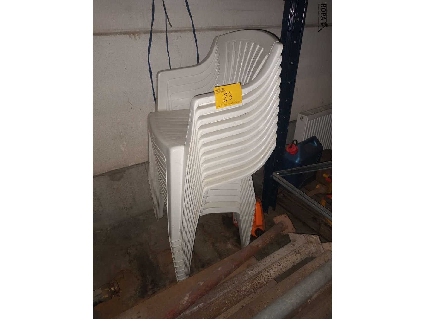 Lot 23 - witte pvc tuinstoel. 11 stuks