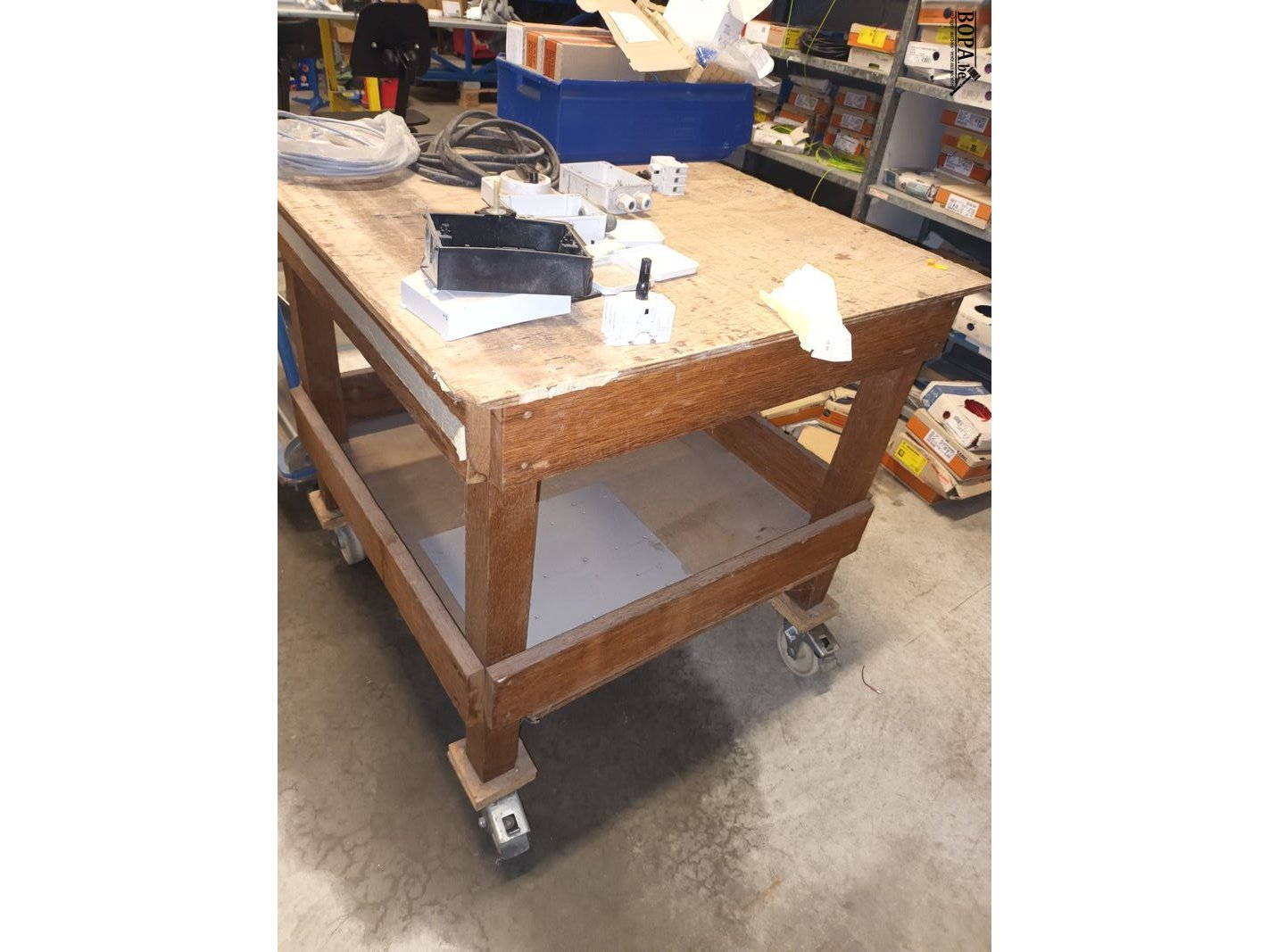 Lot 127 - houten werktafel op wielen