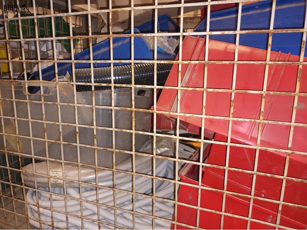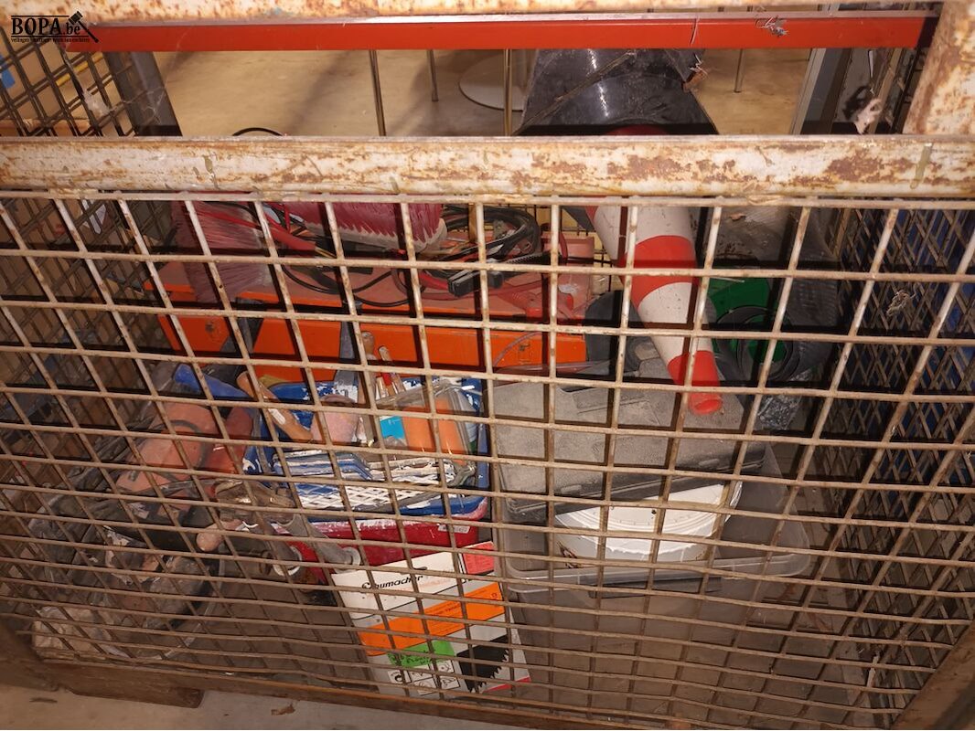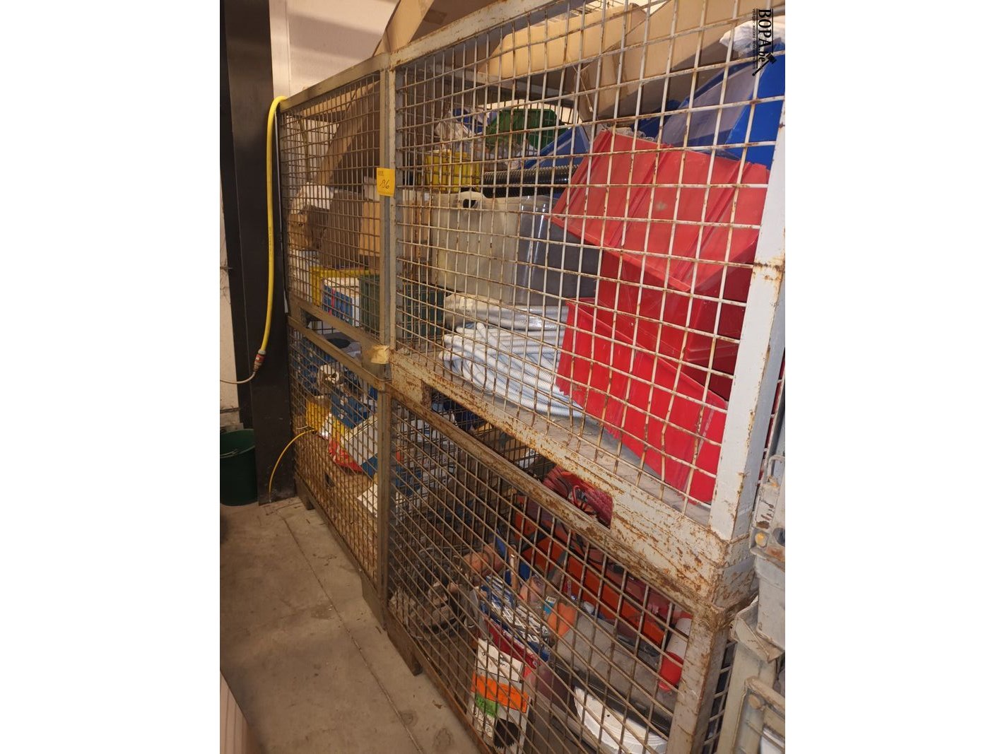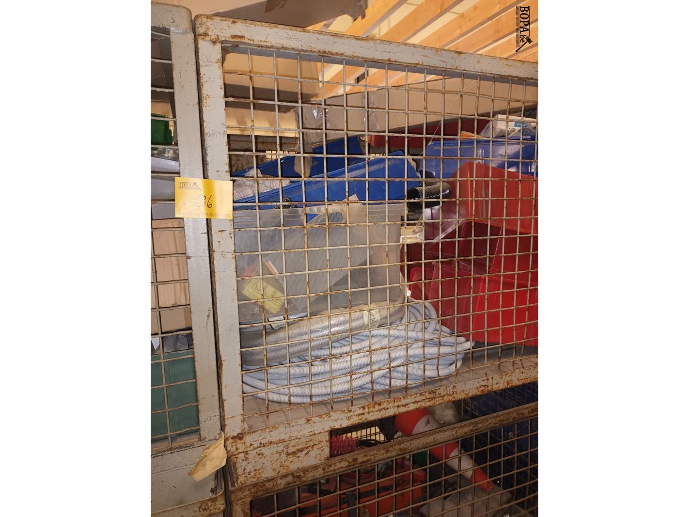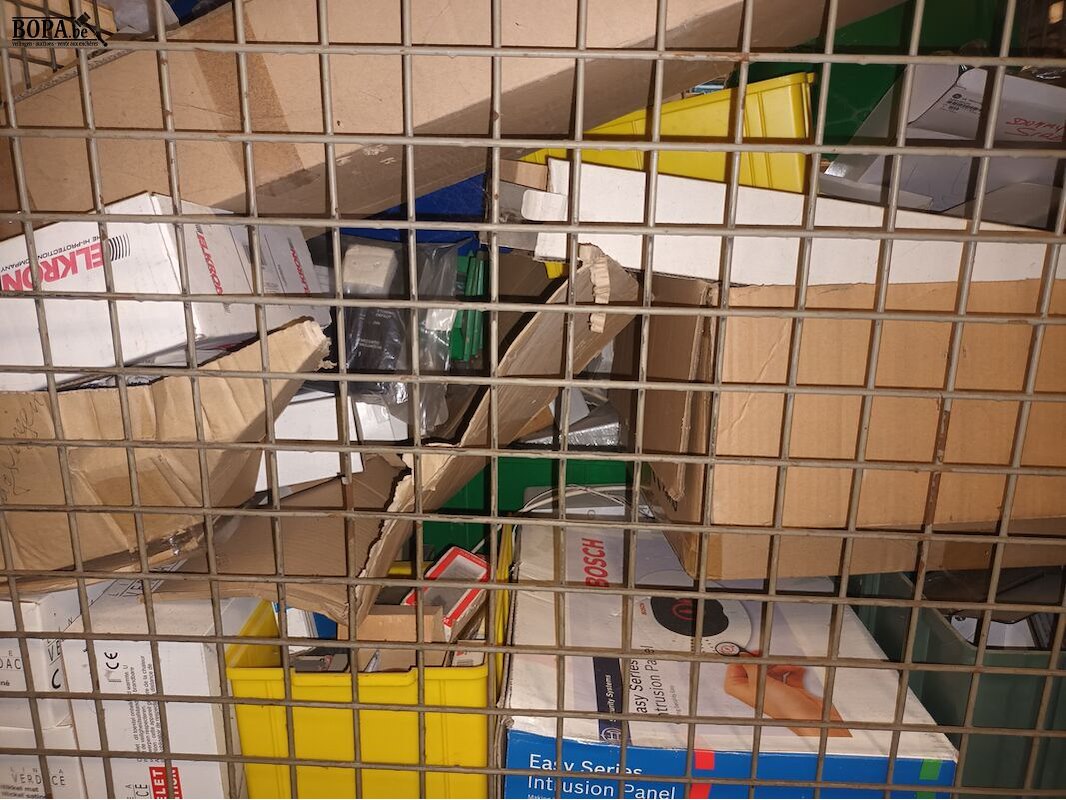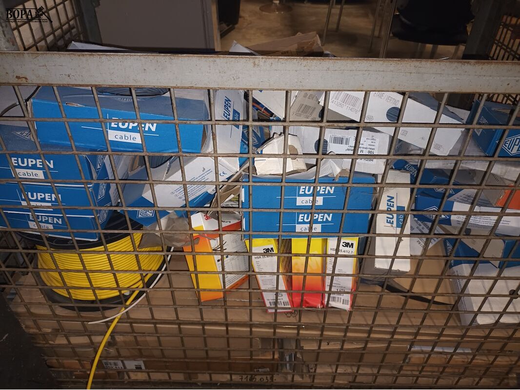 4 metalen stapelkooien met materiaal voor elektrische installaties.