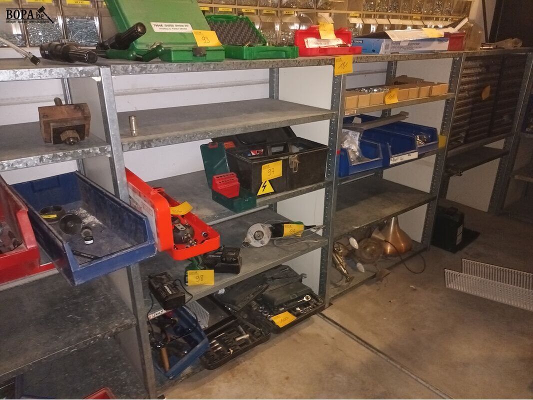 Grijs laag metalen magazijnrek. 410 x 50 x 130 cm.