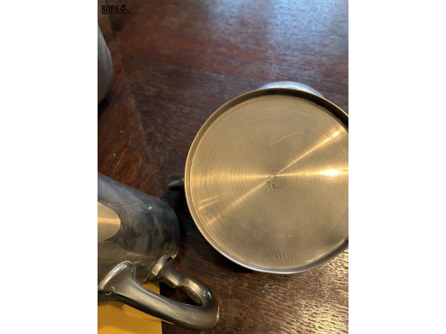 Koffiekan, melk en suikerpotje, tin, genummerd, 3 stuks
