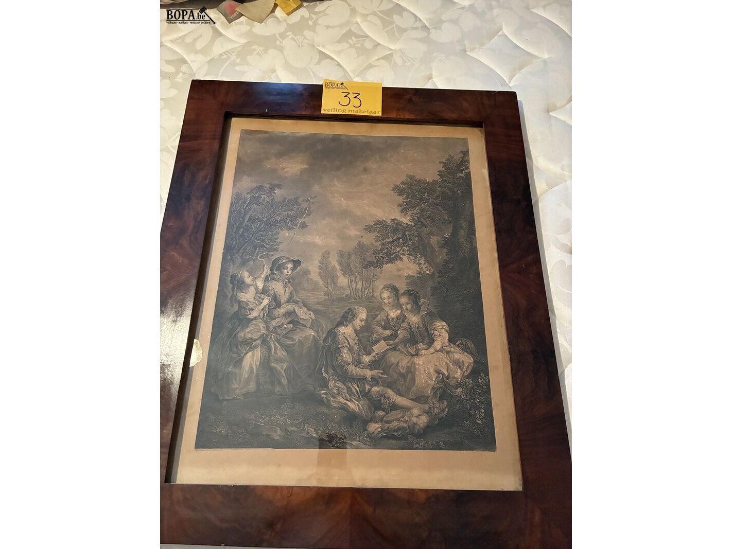Lot 33 - mahoniehouten kader met prent spaanse les
