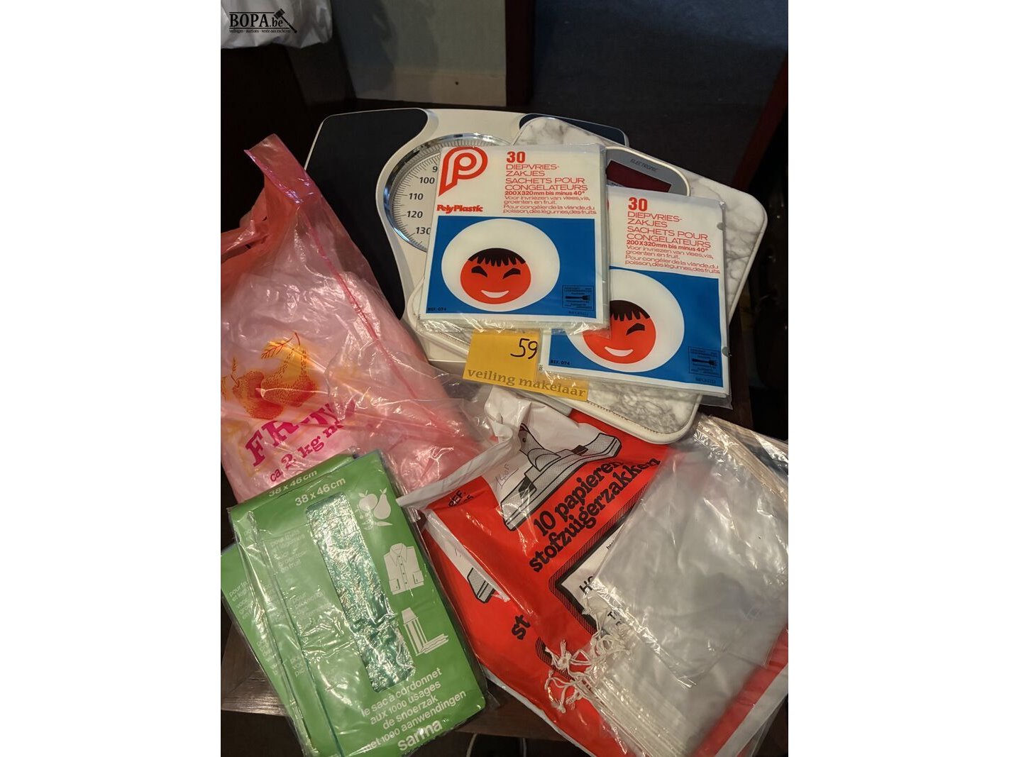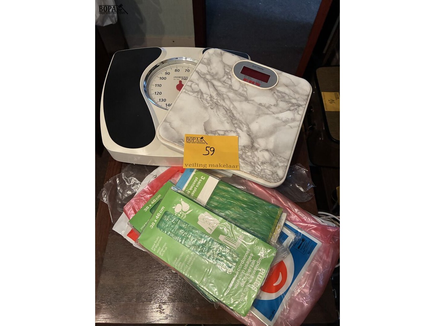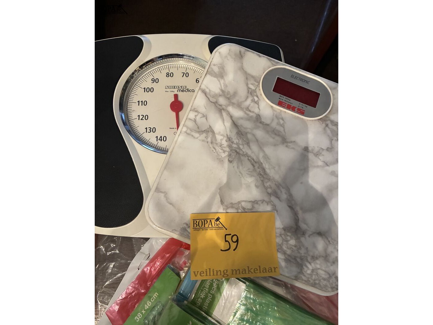 Lot 59 - plastic zakjes en personenweegschaal, 2 stuks