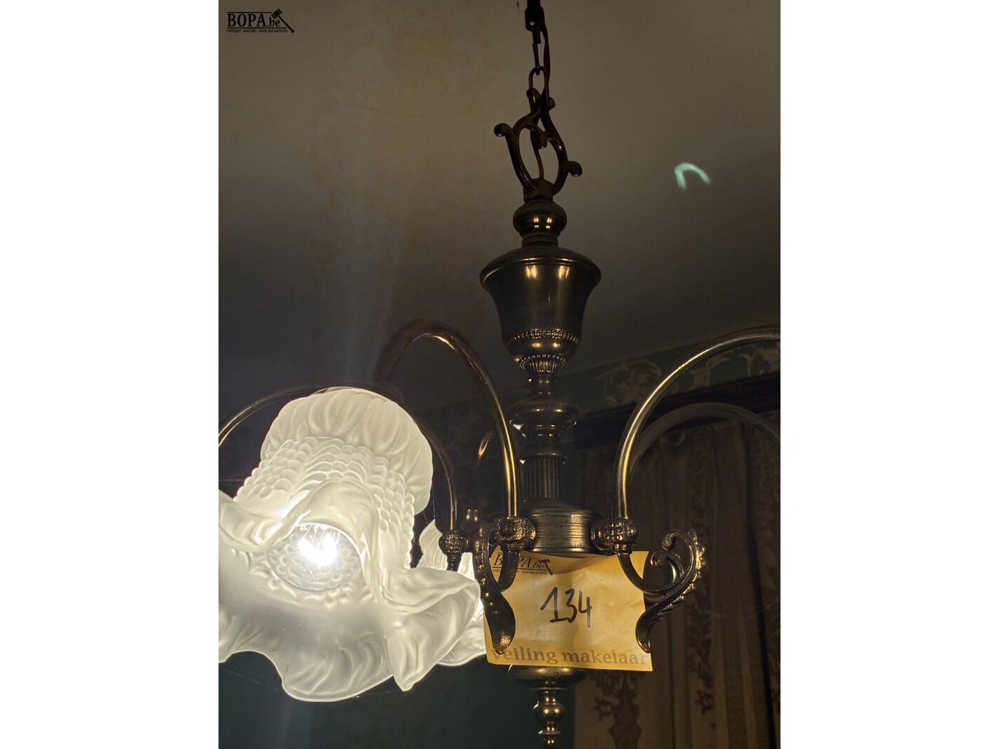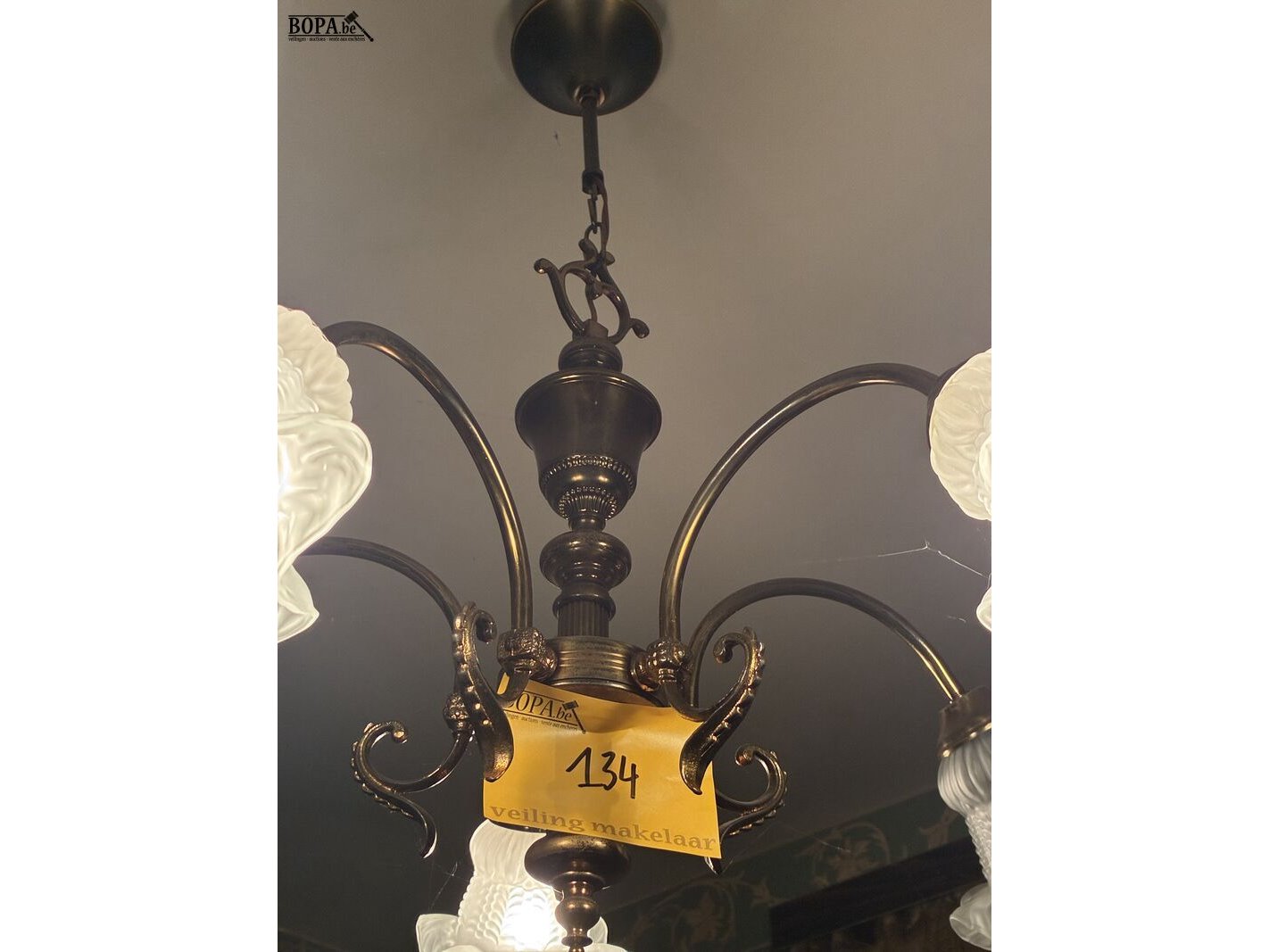 Lot 134 - luchter in koper met glazen kapjes