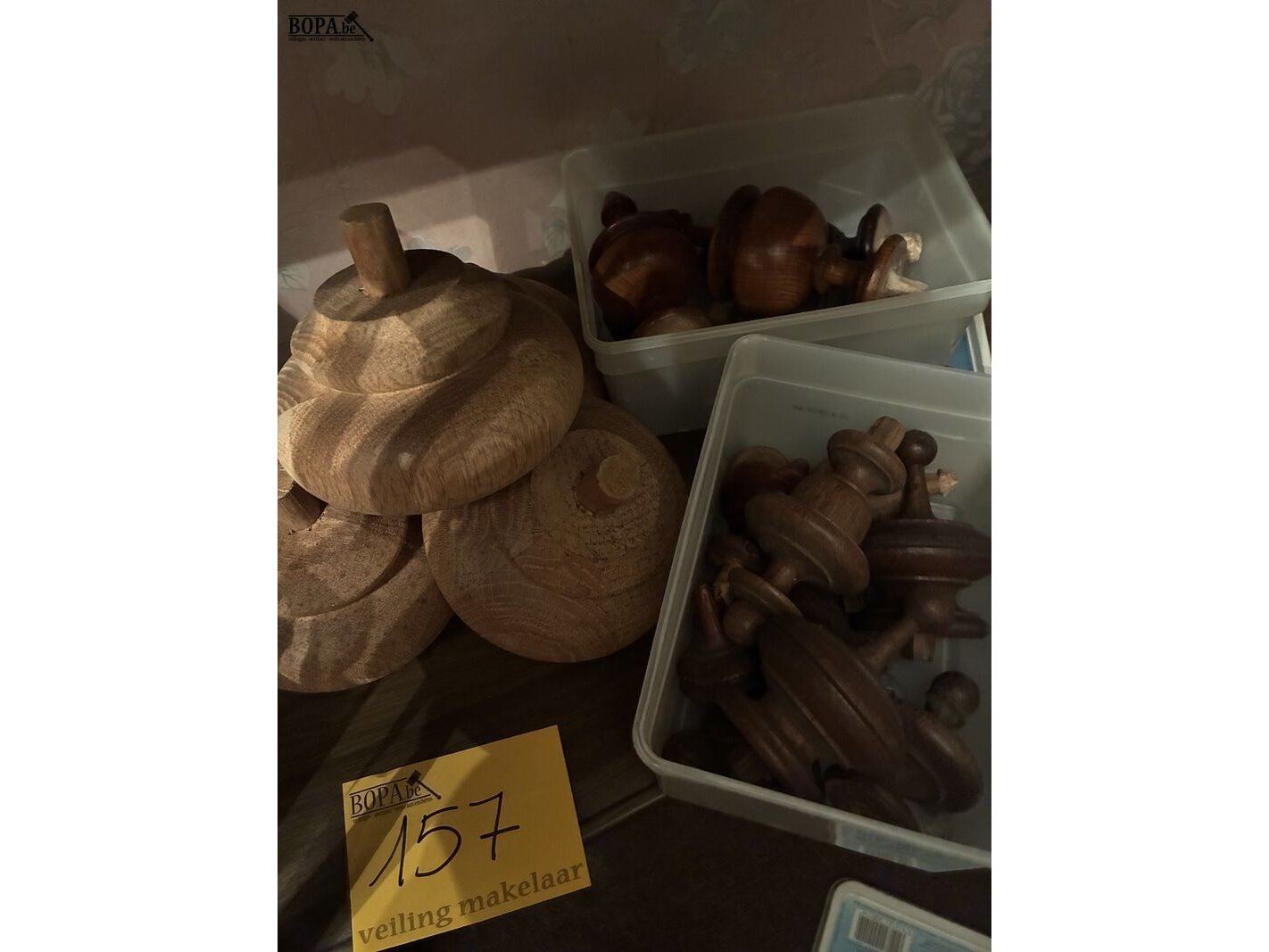 Lot 157 - gedraaide houten blokken/toppen