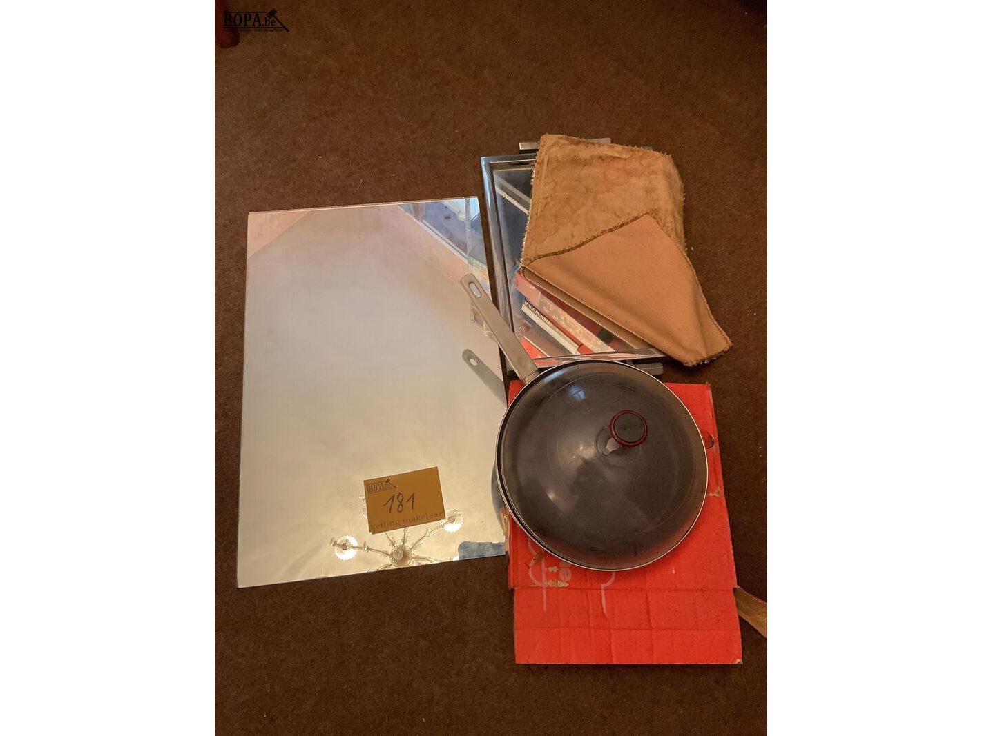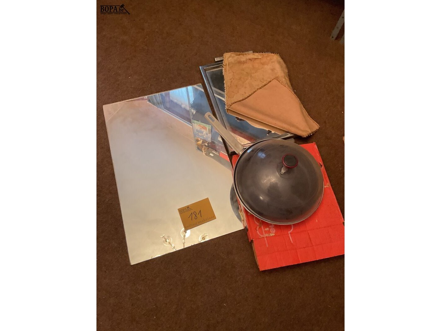 Lot 181 - set spiegel, dienblad en pan kabe, 3 stuks