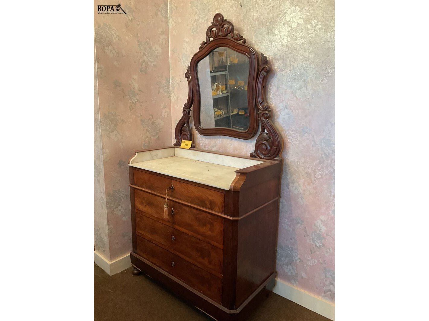 Lot 193 - commode mahoniehout met spiegel en 4 lades