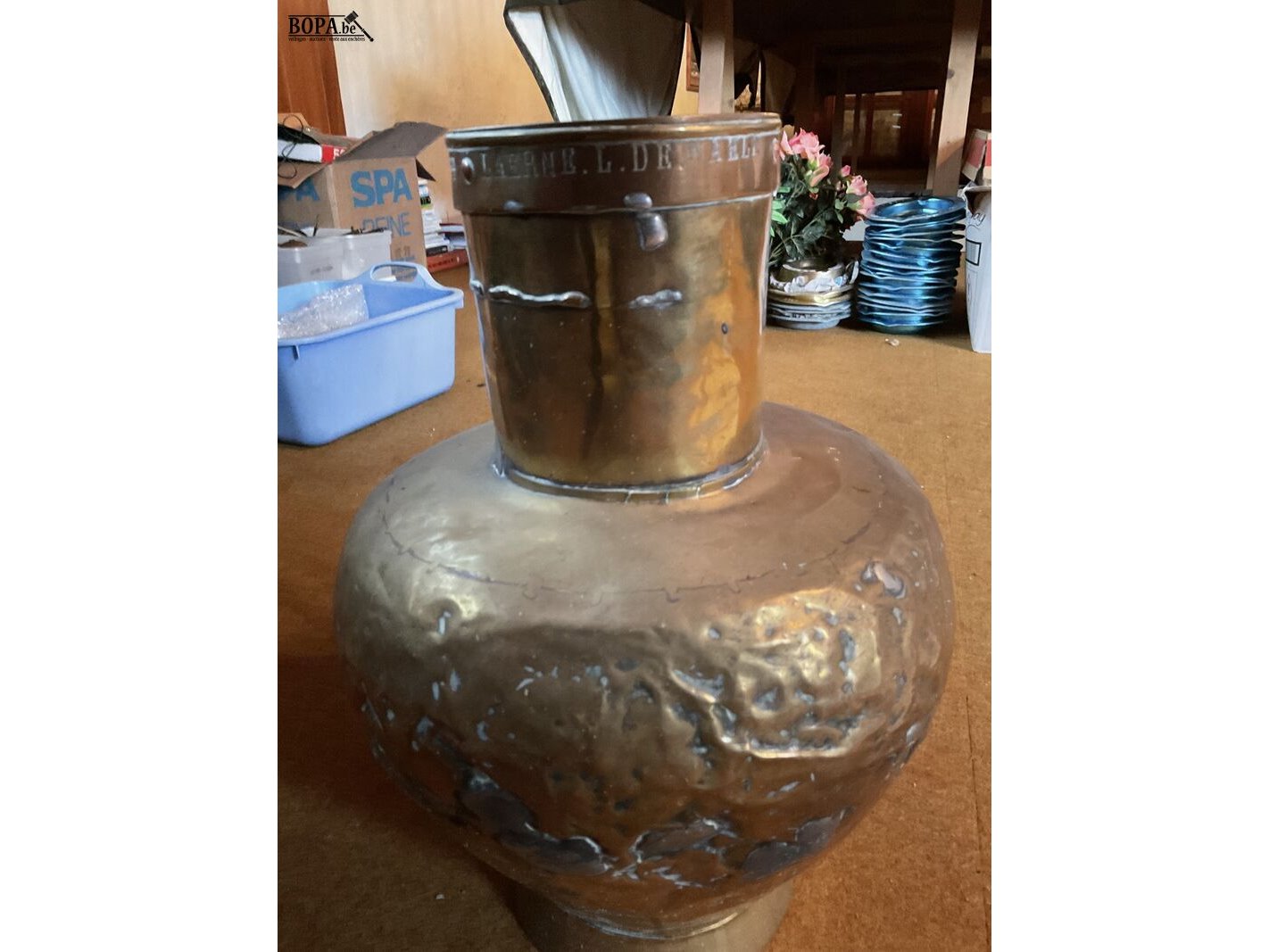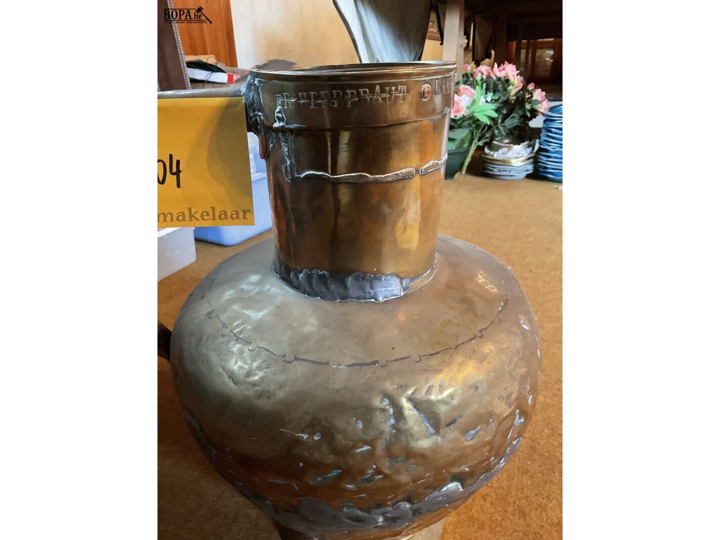Lot 204 - koperen kan met oor,inscriptie in boord