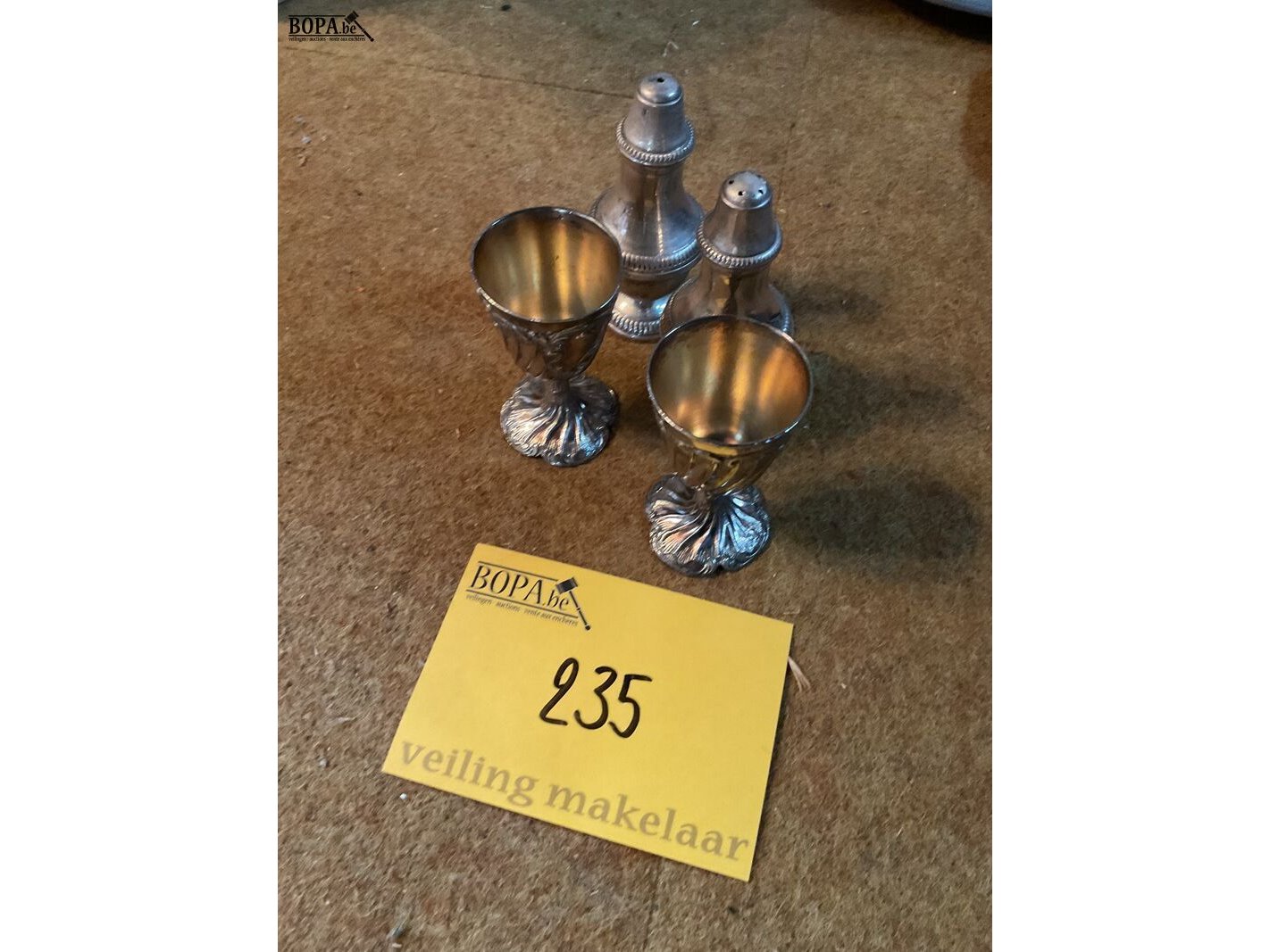 Lot 235 - verzilverde bekertjes en peper-en zoutvat
