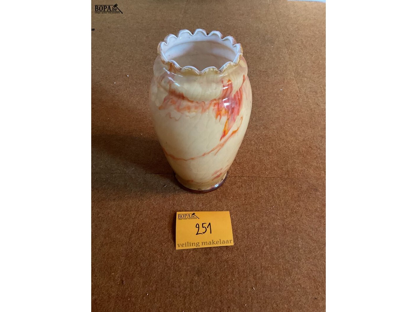 Lot 251 - vaas in opaline glas art deco met kartelrand gemarmerd
