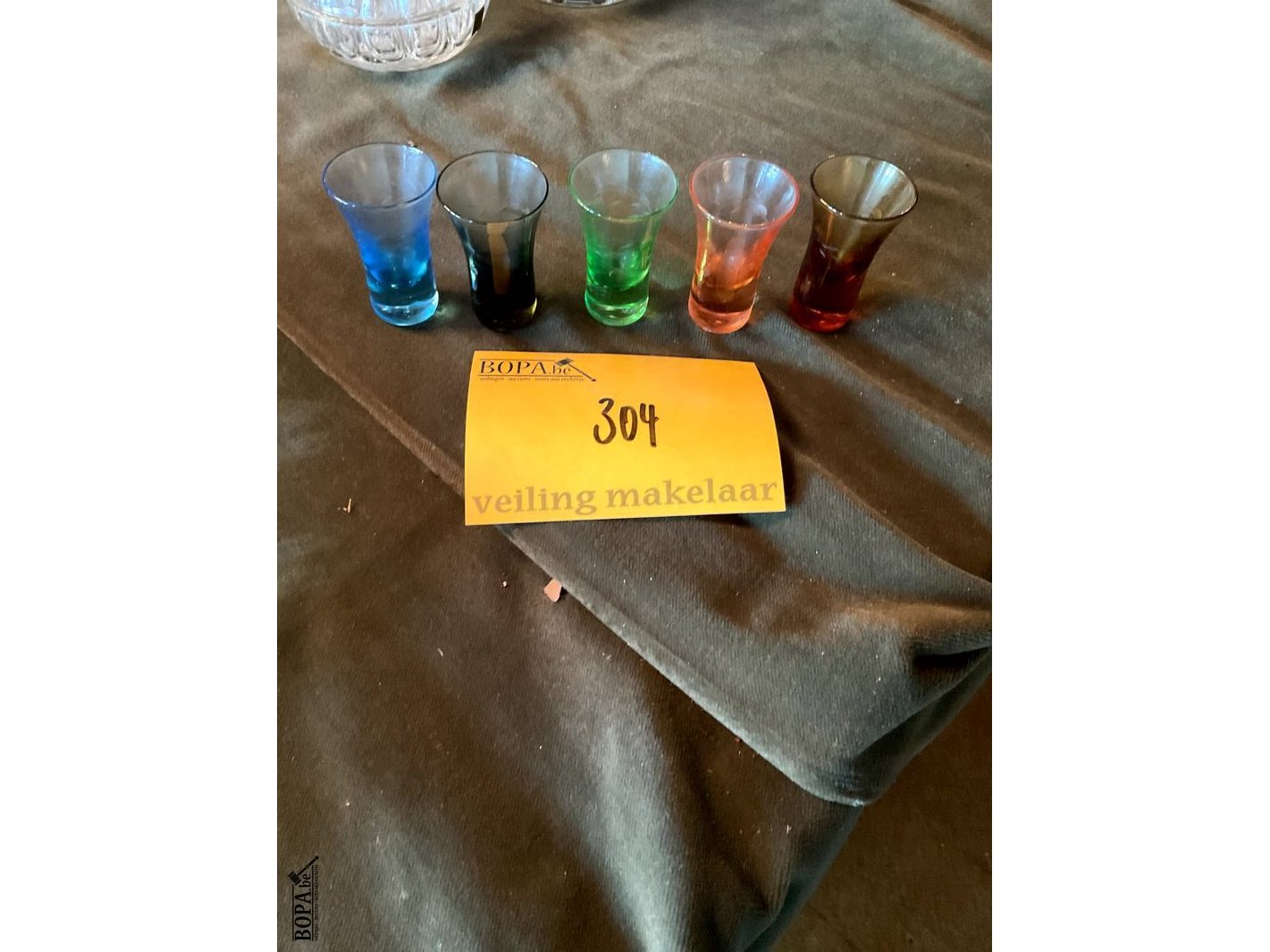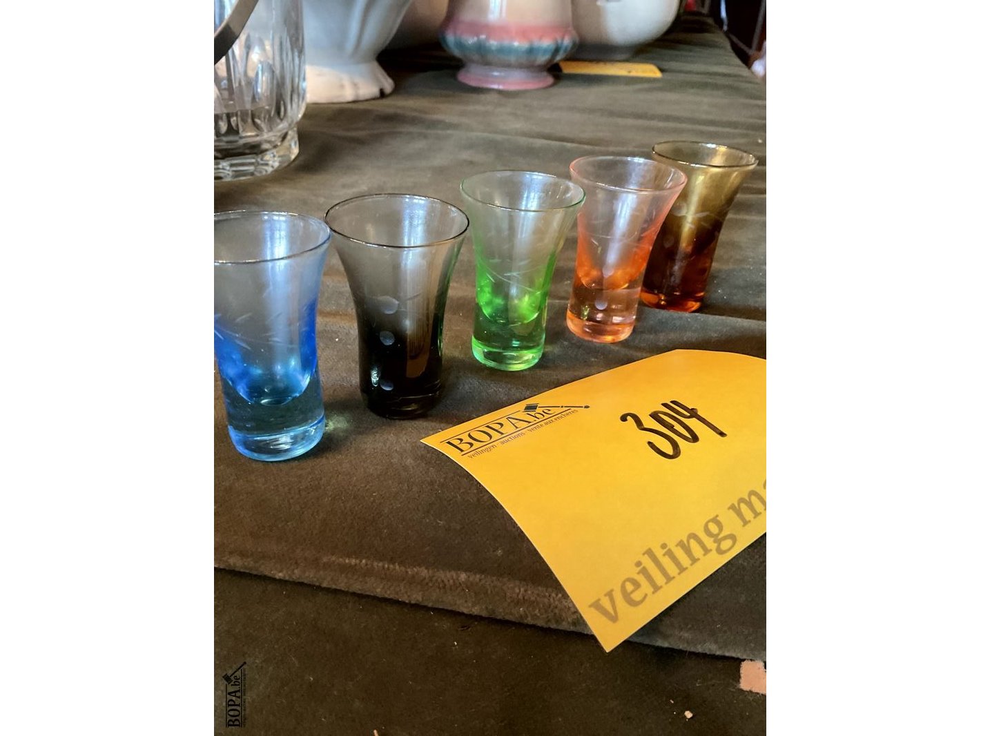 Lot 304 - vintage gekleurde likeurglaasjes met graveringen
