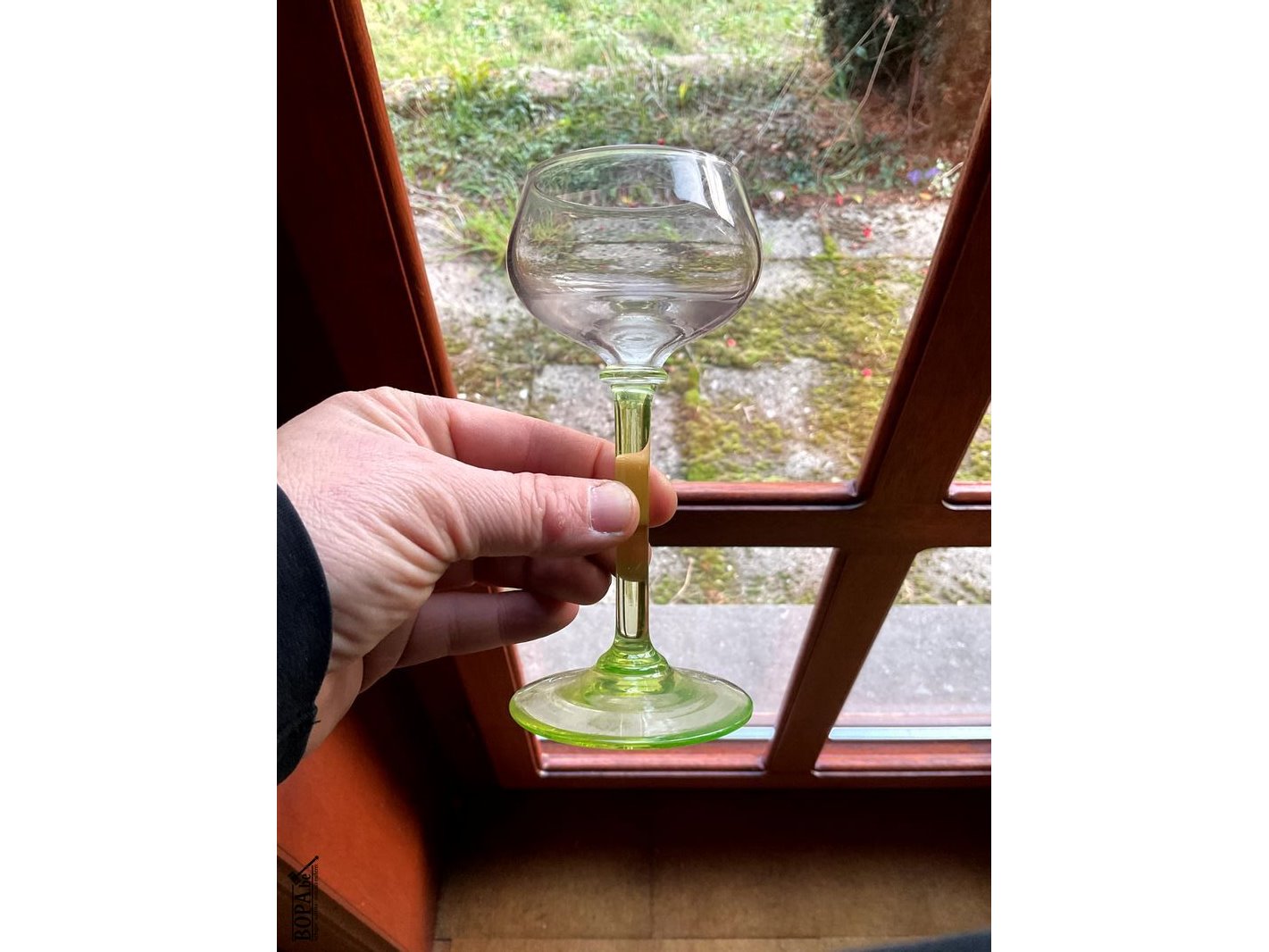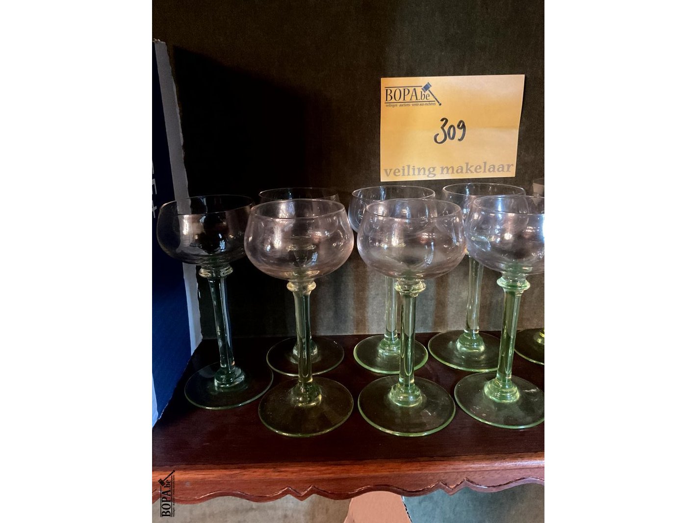 Lot 309 - oude wijnglaasjes op groene voet, 11 stuks