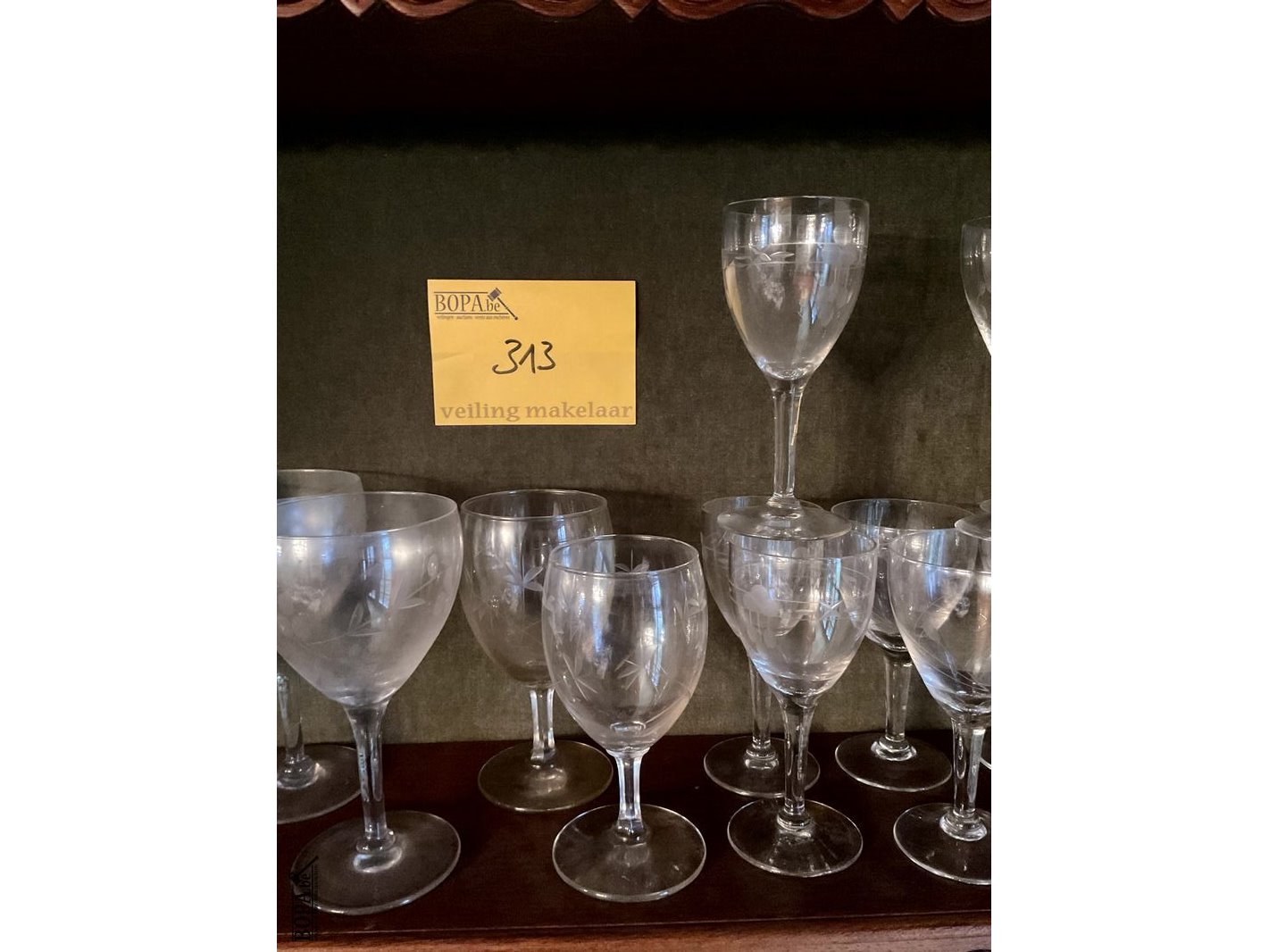 Lot 313 - lot wijnglazen met bloemgraveringen, 23 stuks