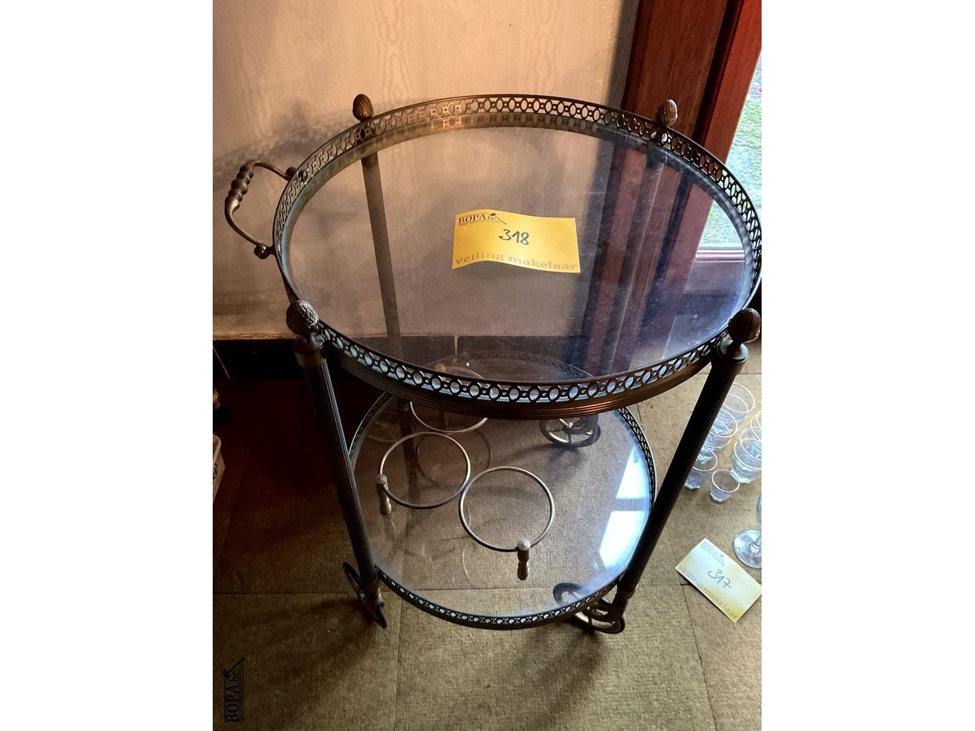 Lot 318 - ronde serveertrolley met 2 laden,verguld brons gebruikte sta