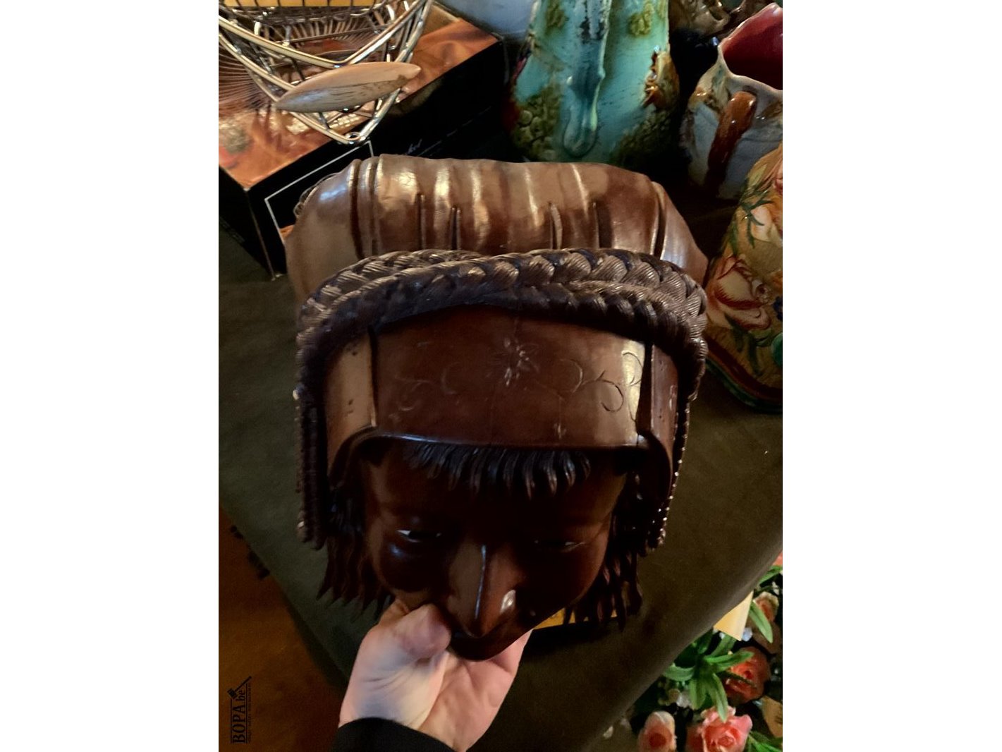 Lot 327 - gesneden houten masker met benen tanden
