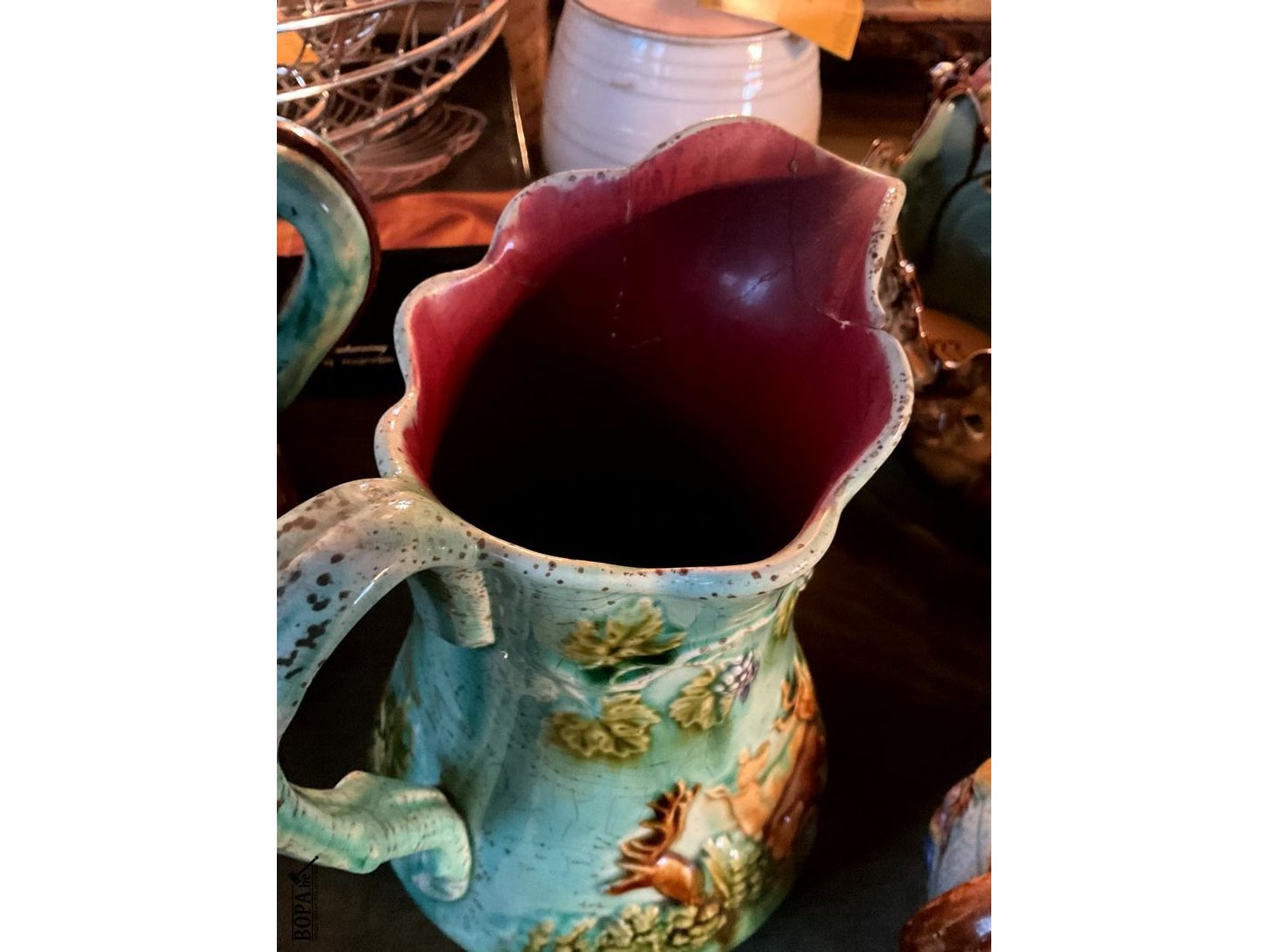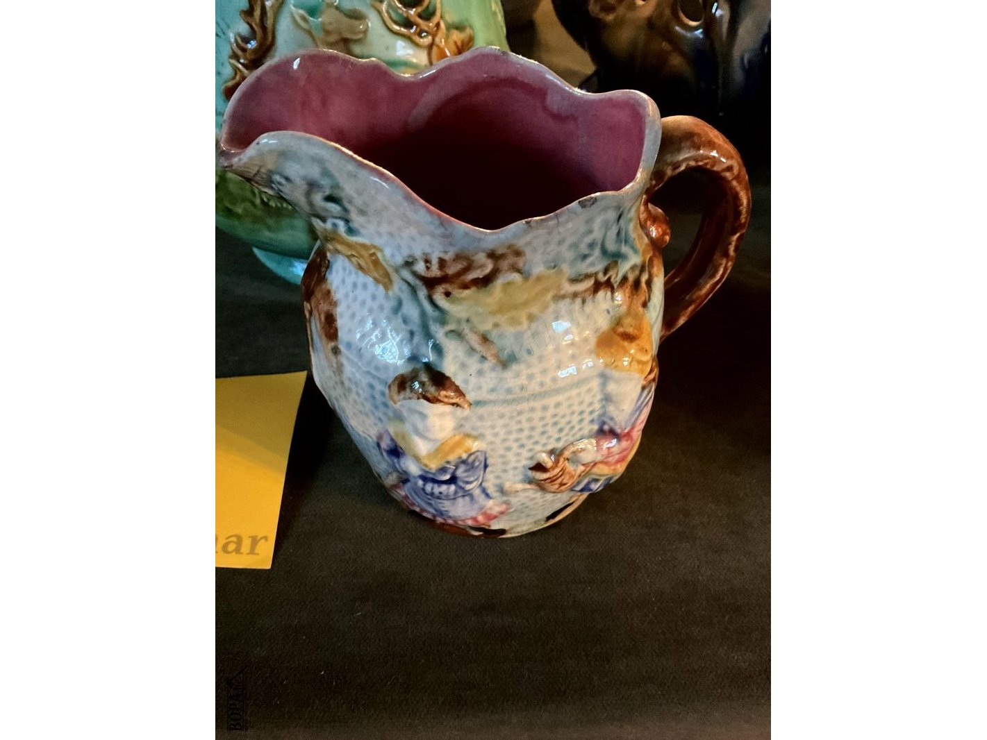 Lot 329 - majolicakan met reliefdecor/kleine majolica