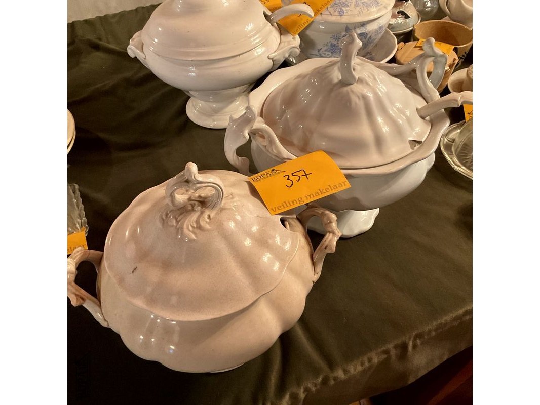 Lot 357 - wit porselein soepterinnes, 2 stuks met opscheplepel, 1 stuk
