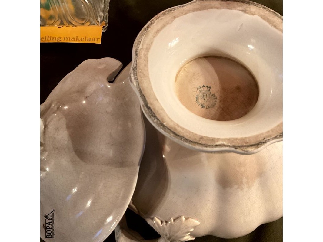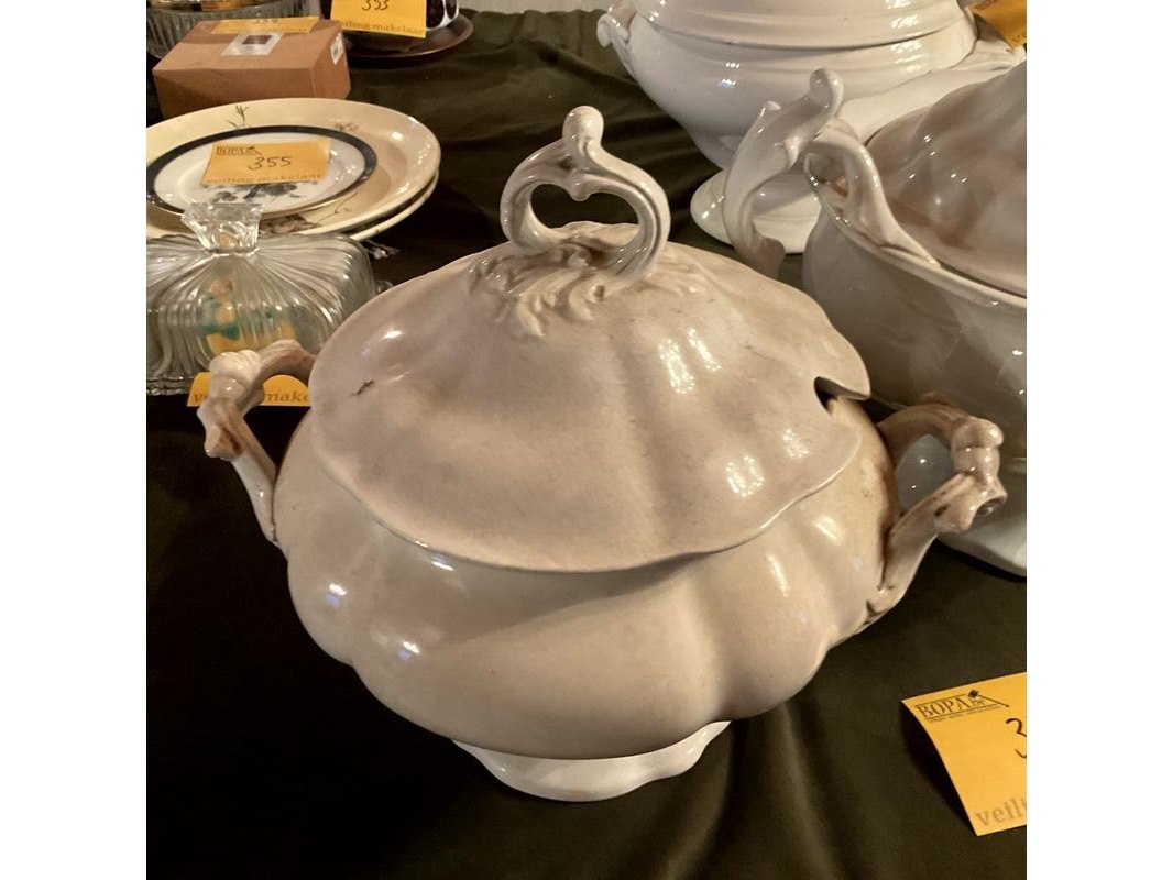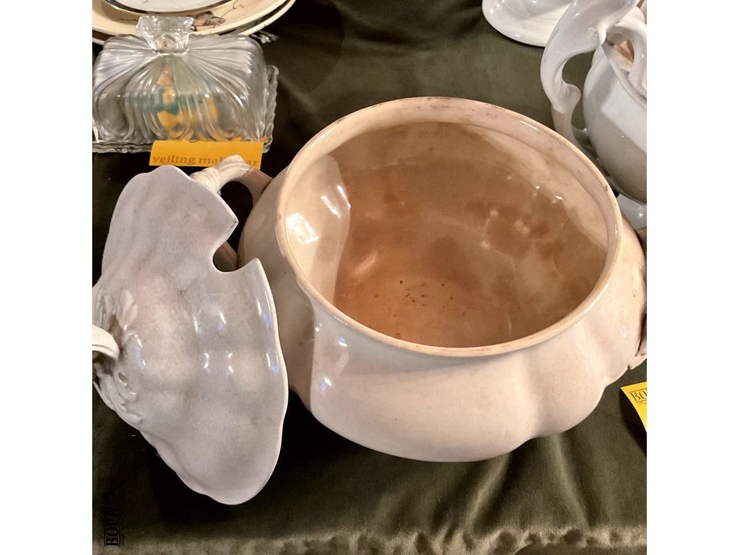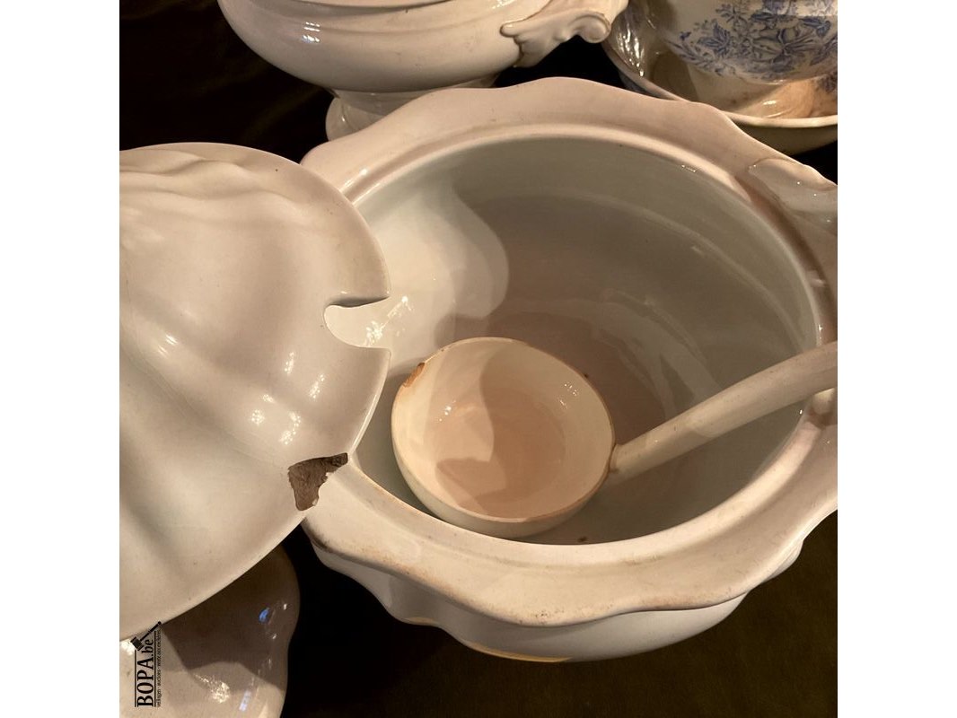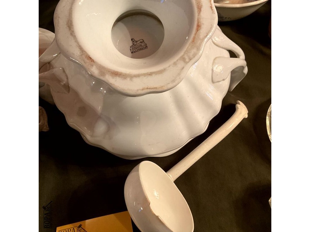 Wit porselein soepterinnes, 2 stuks met opscheplepel, 1 stuks