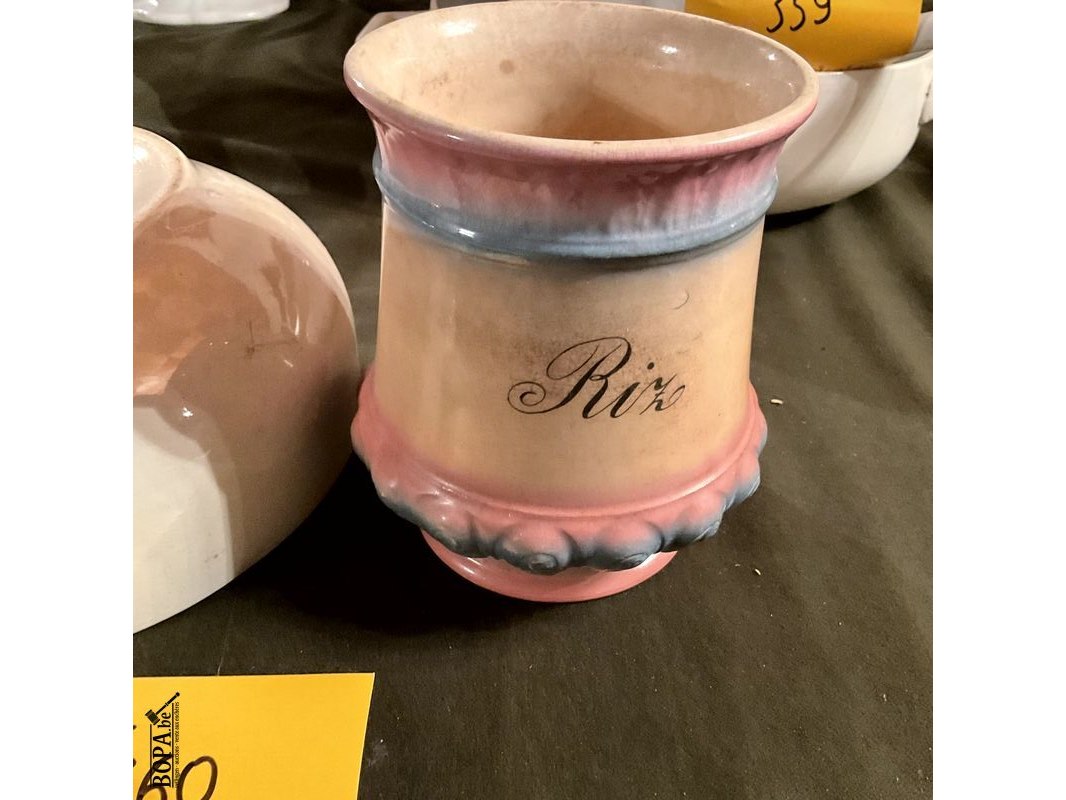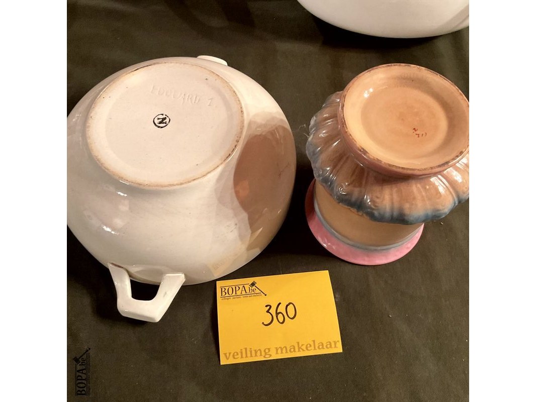 Lot 360 - schotel wit porselein eduard en roze pot opschrift riz, 2 st