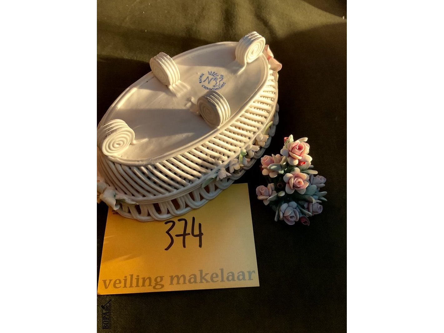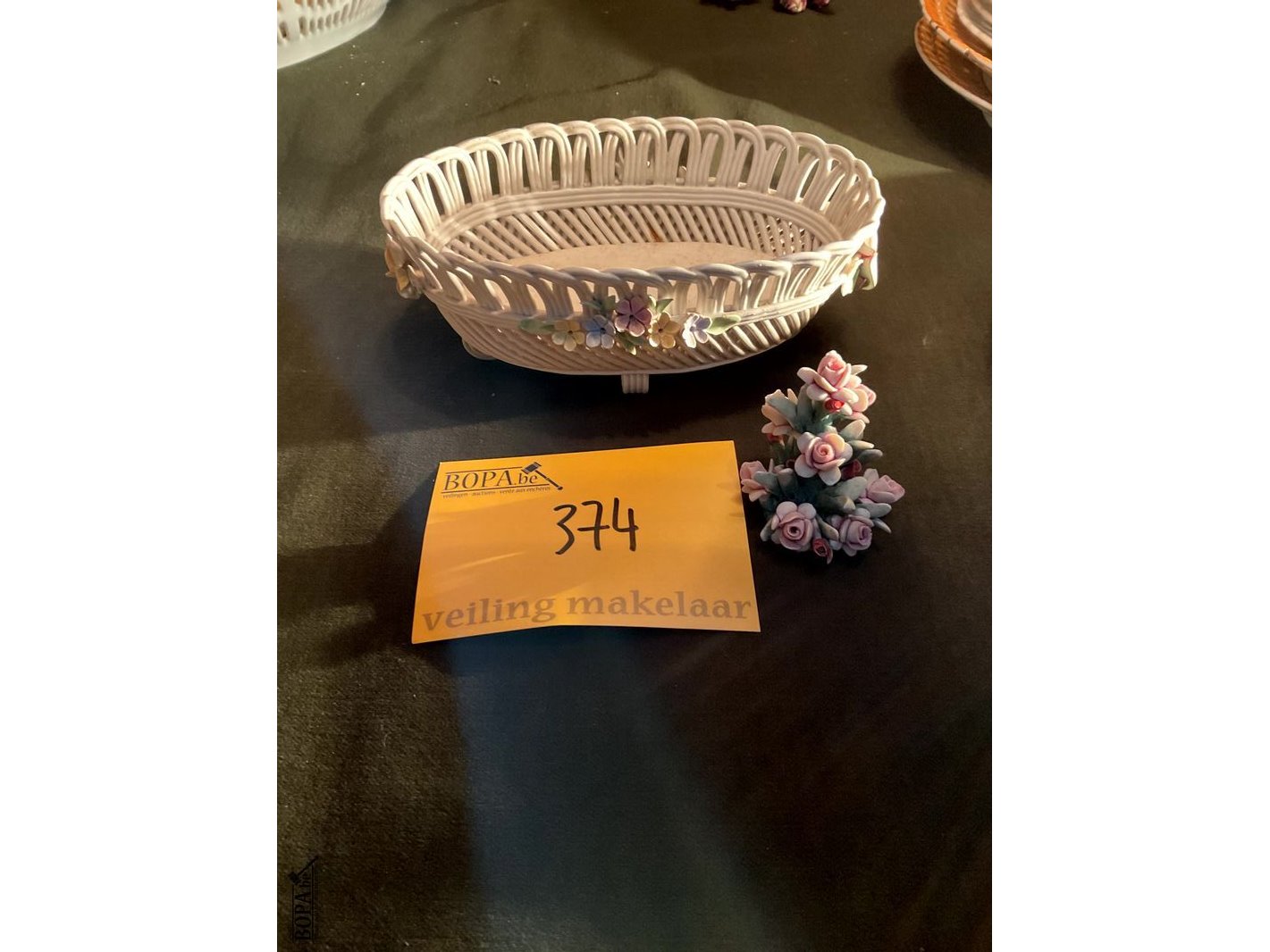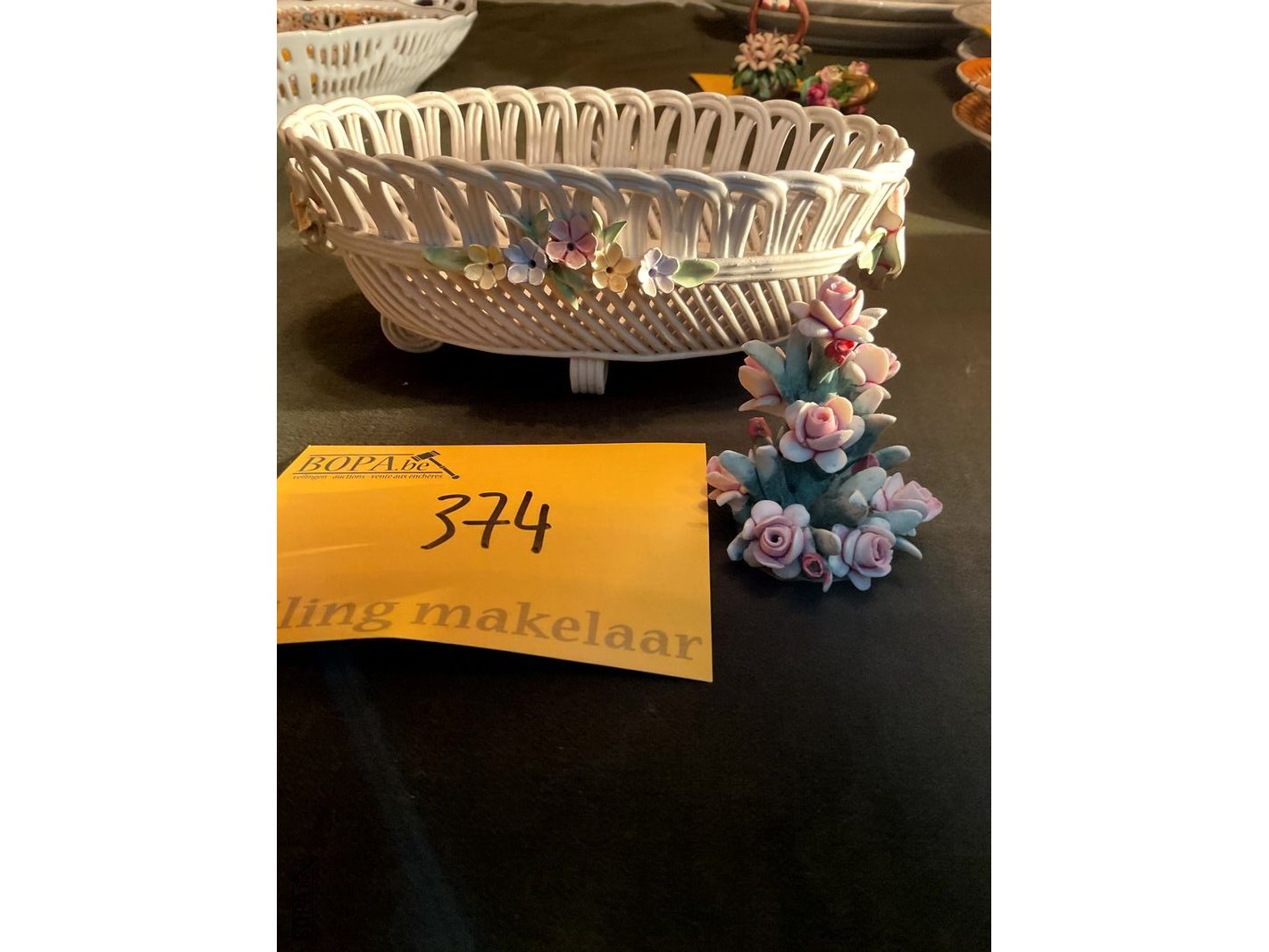 Lot 374 - porselein mandje/bloemstukje capodimonte, 2 stuks