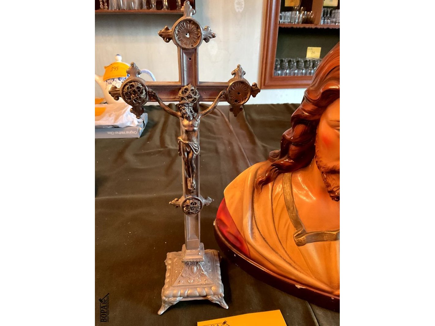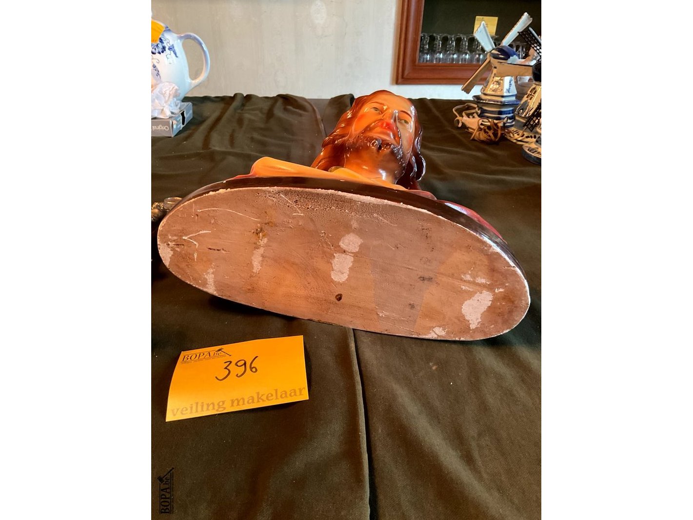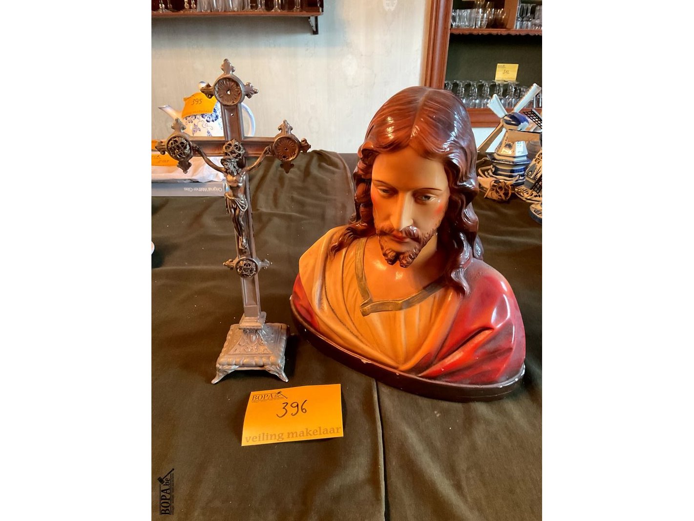 Lot 396 - religieus tinnen kruisbeeld/h.hartbeeld plaaster g. carli