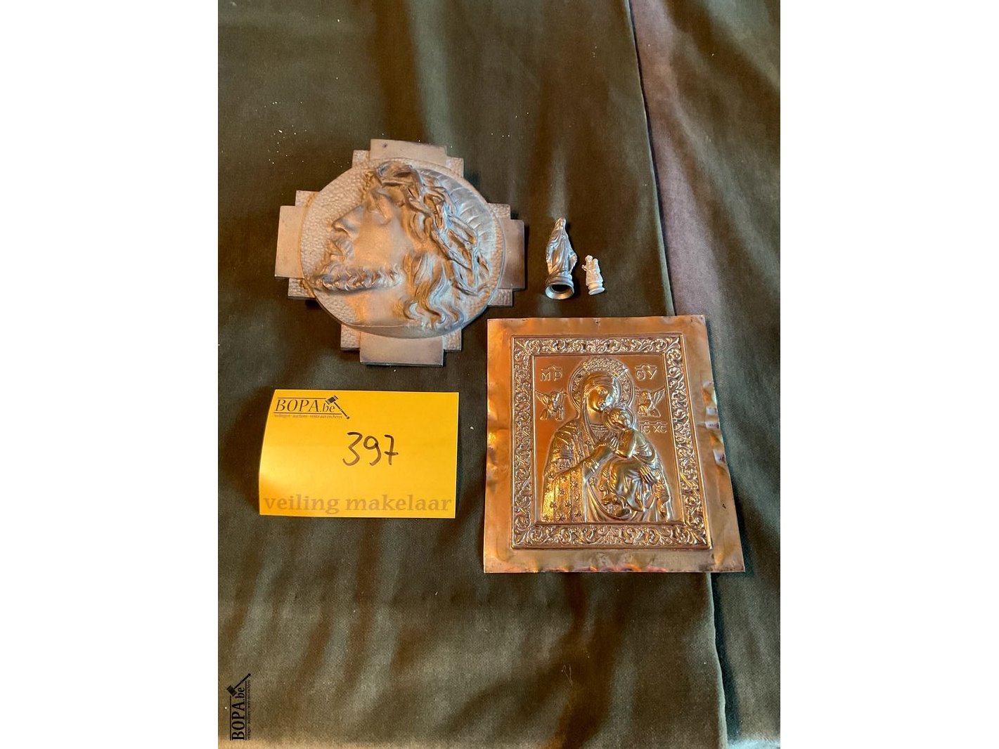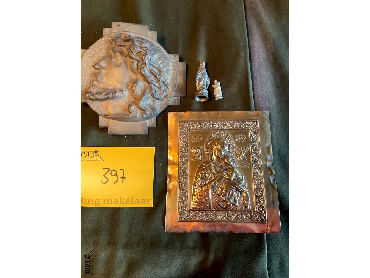 Lot 397 - religieus kristuskop/zilverkleurig plaatje icoonstijl/ klein