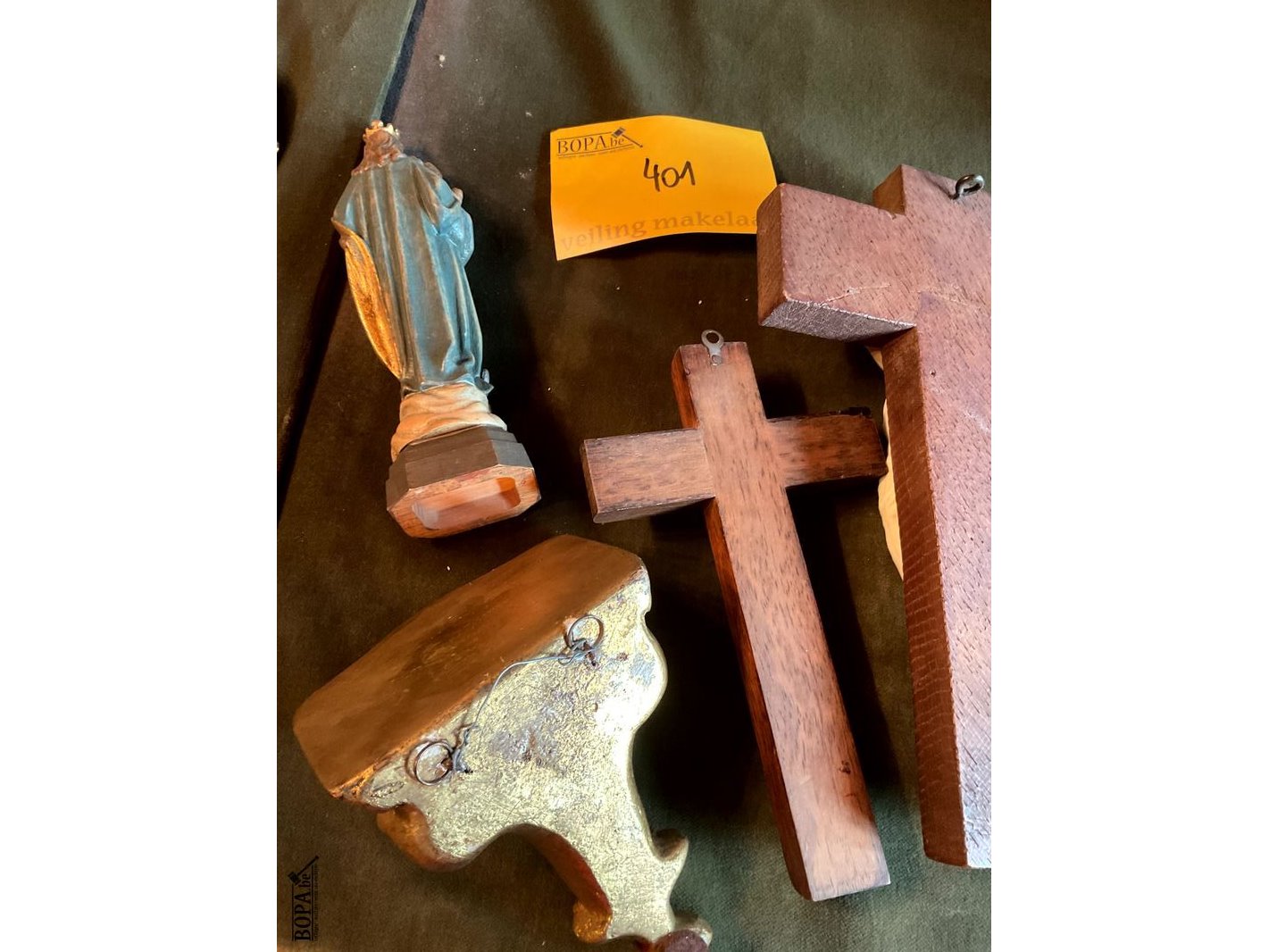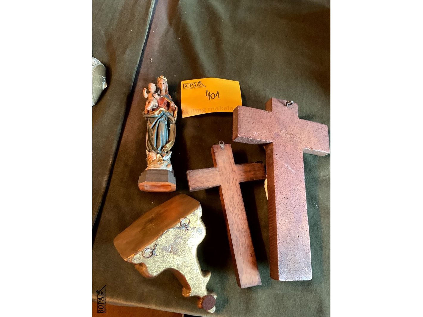Lot 401 - kruisbeelden/beeldje maria op console in hout