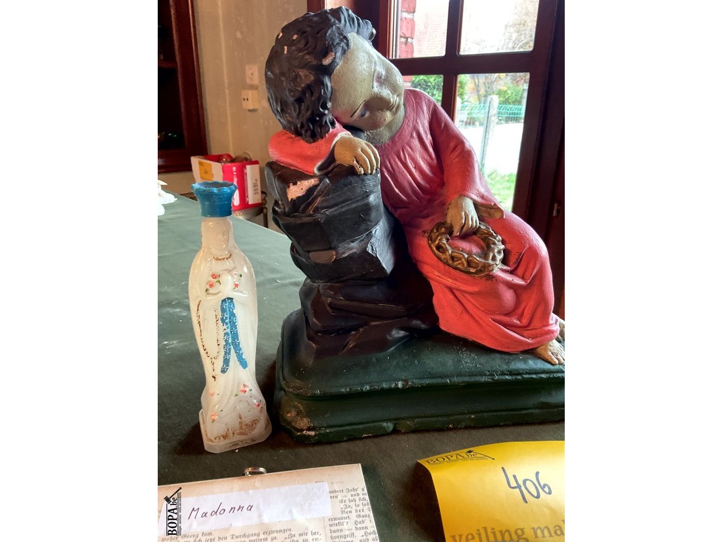 Lot 406 - beeld kind jezus plaaster met 3 kleinere religieuze objecten