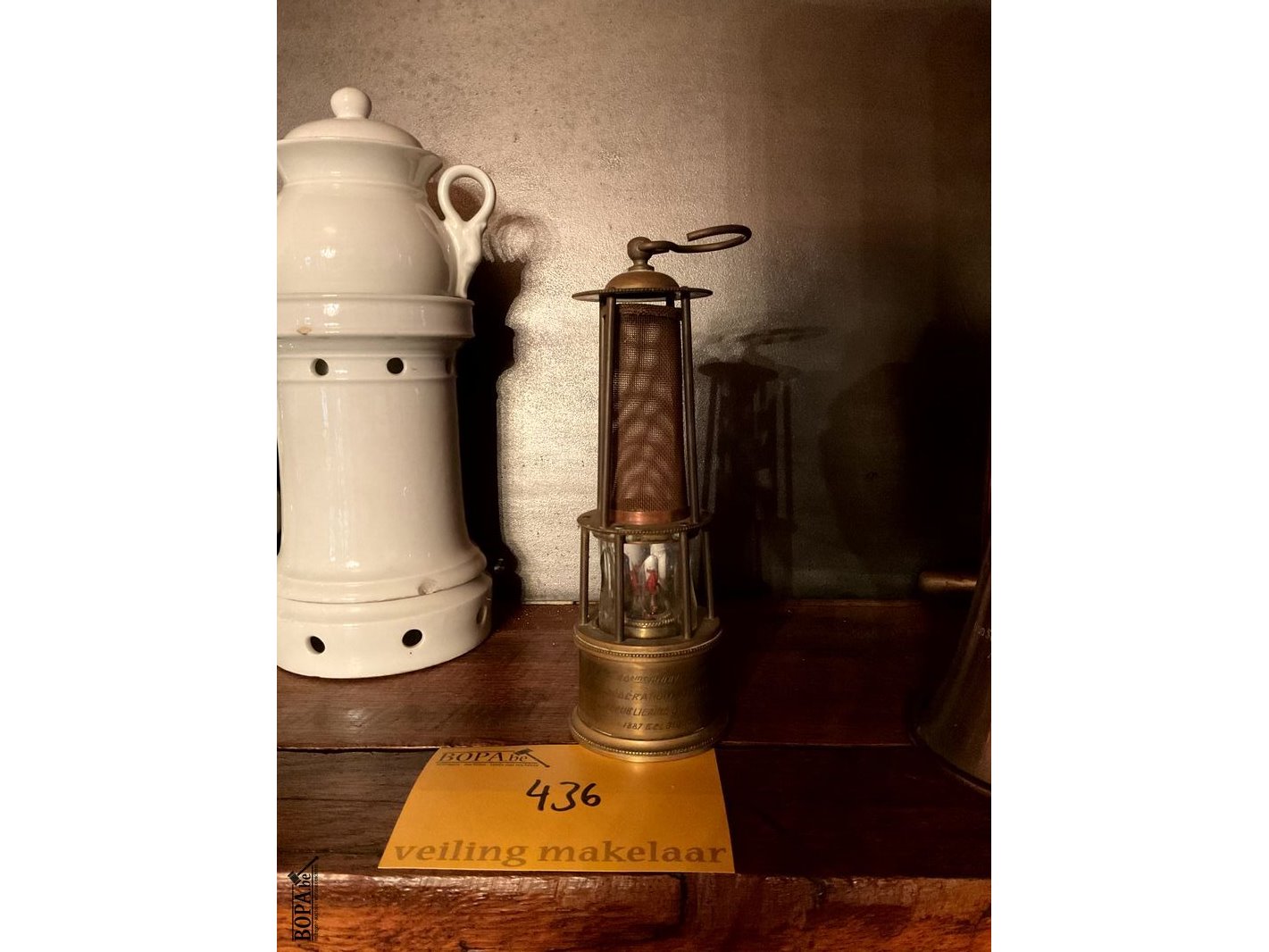 Lot 436 - mijnlampje met opschrift brons, 1887-1927