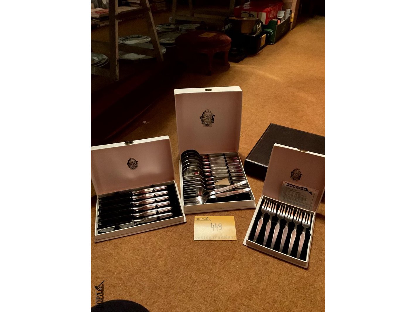 Lot 449 - koffertjes met bestek inox/klein aantal bestek verzilverd of