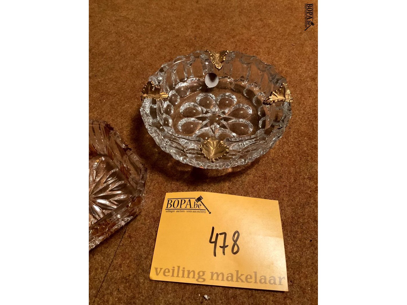 Lot 478 - kristallen asbak/vierkantig kristal bakje, 2 stuks