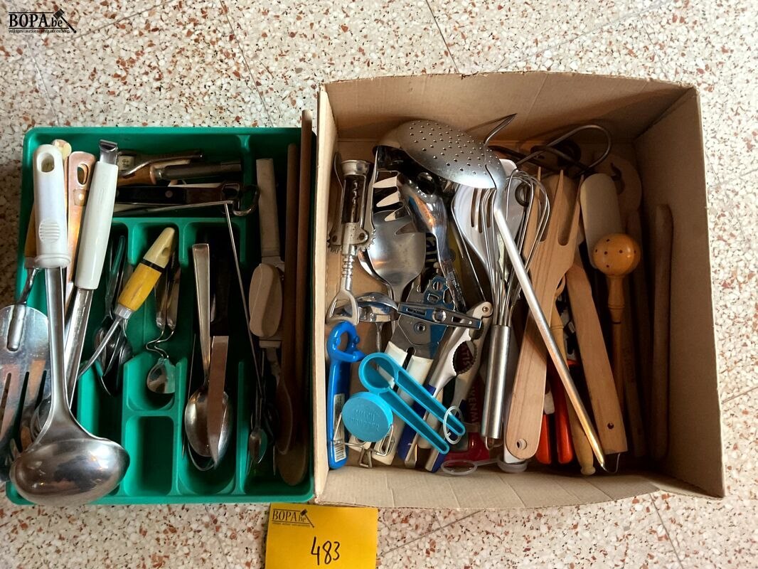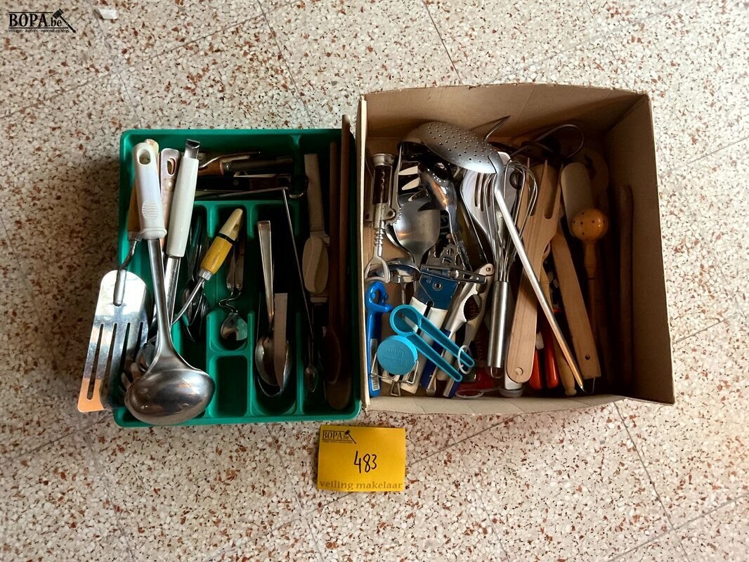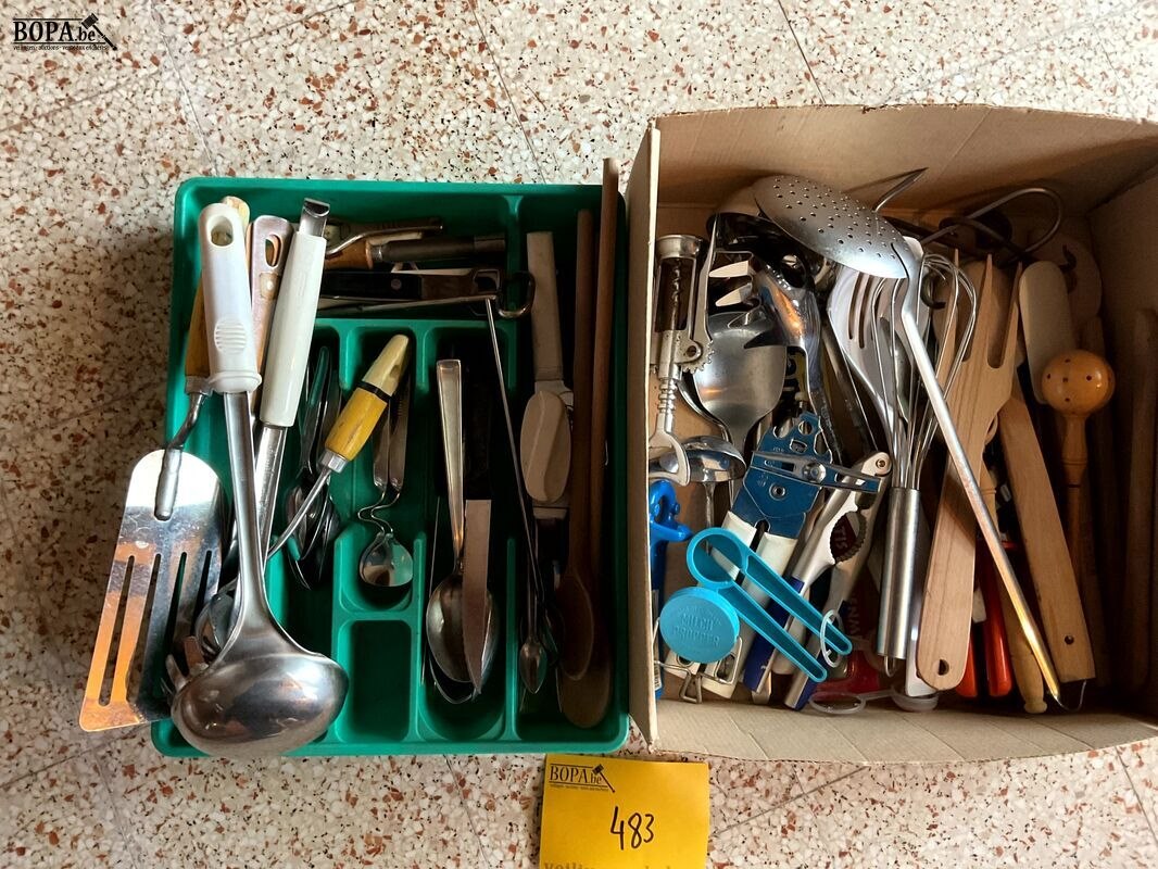 Lot 483 - bakken met klein keukenmateriaal, 2 stuks