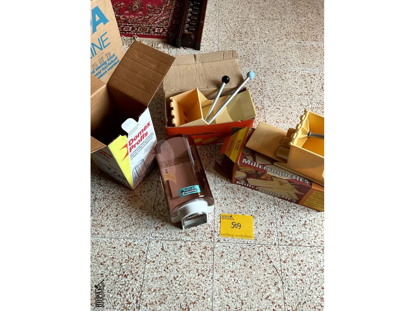 Toestel millecroquettes met reserve onderdelen en papierdispenser