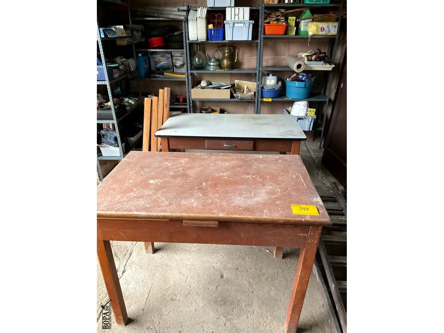 Lot 519 - oude keukentafels, 2 stuks -1 met verlengstukken-