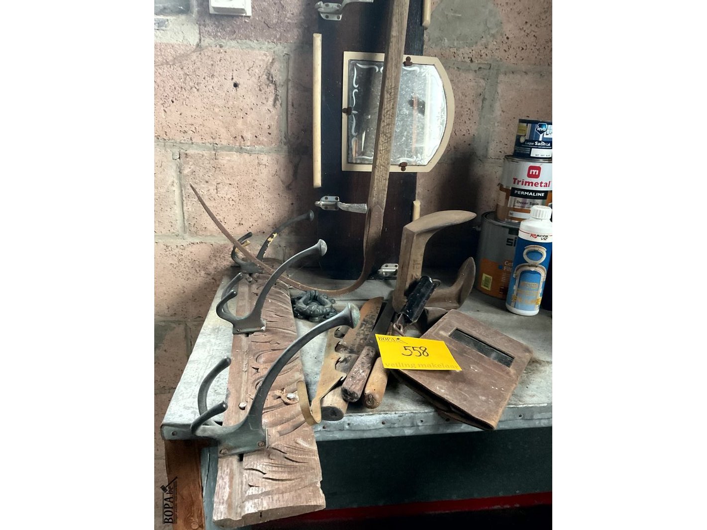 Lot 558 - kapstokken, messen, schoenaambeeld, dorsvlegel, deurklopper