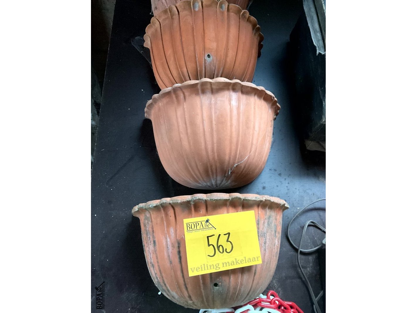 Lot 563 - aardewerken bloempotten bedoeld voor de wand, 4 stuks