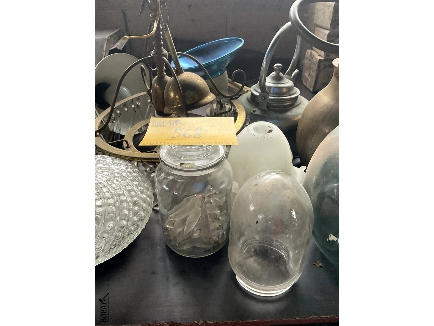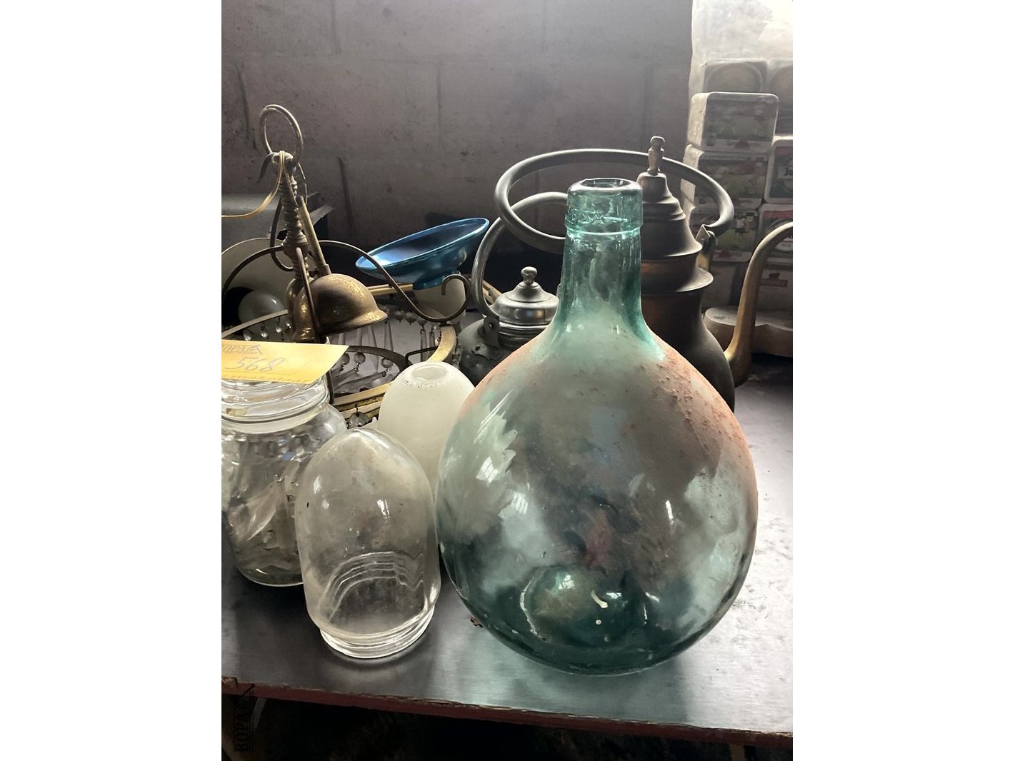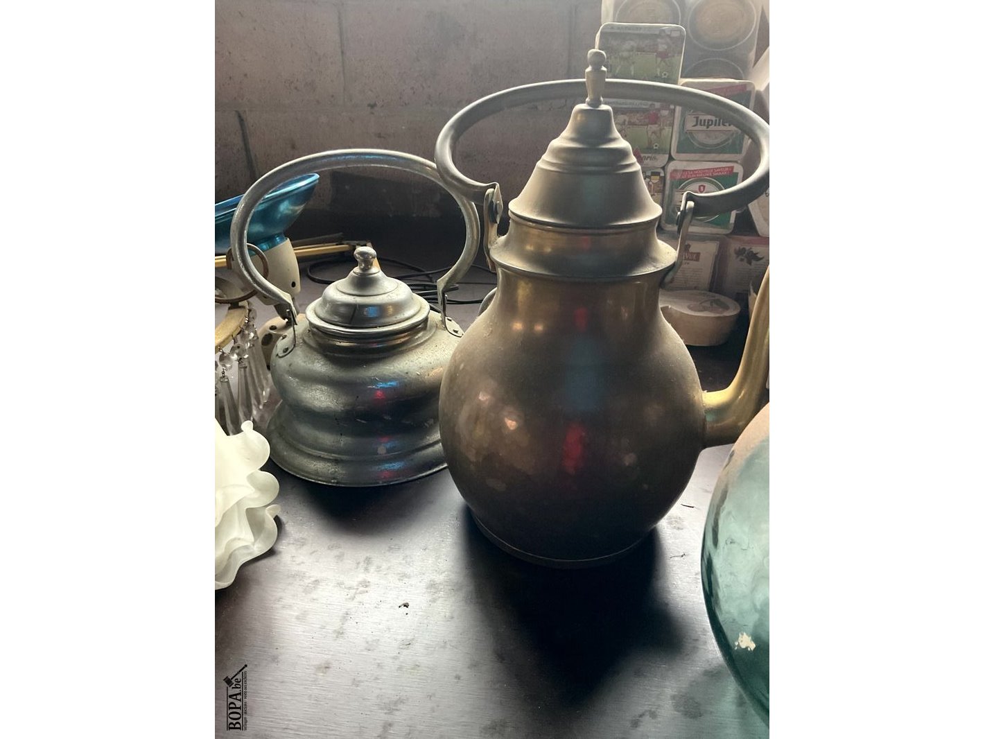 Lot 568 - oude verlichting ,waterketels, groen glazen dame jeanne