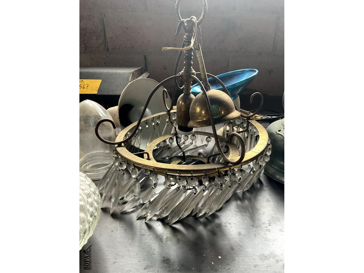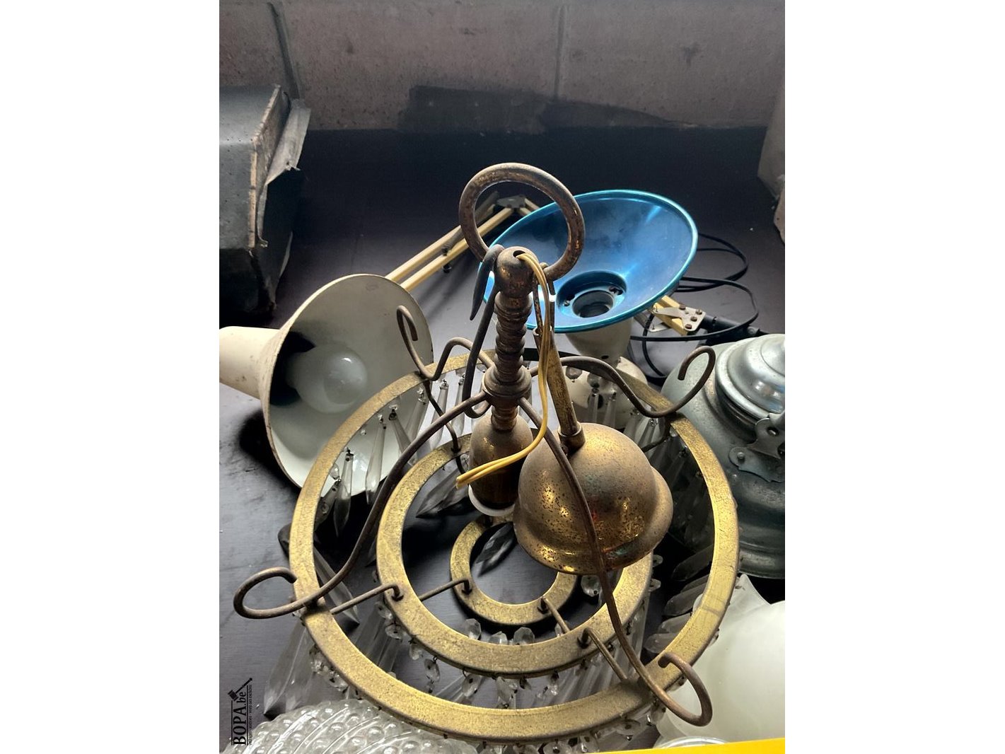 Oude verlichting ,waterketels, groen glazen dame jeanne